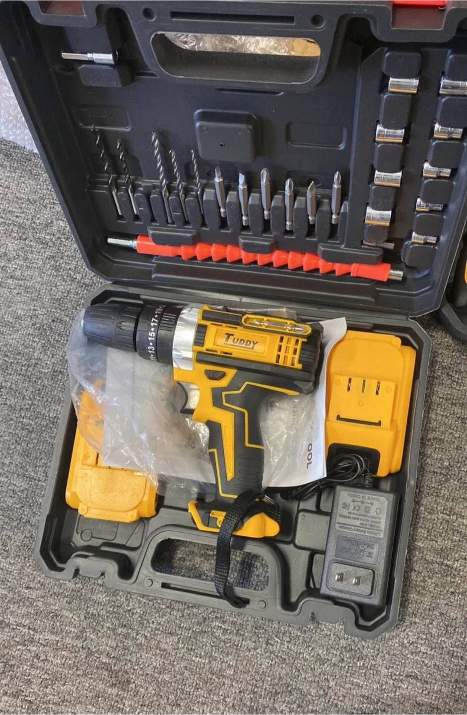 0Selling a Tuddy cordless drill set in excellent condition! It comes with two batteries, a charger, and a variety of drill bits and accessories, all neatly organized in a carrying case. Perfect for DIY projects around the house