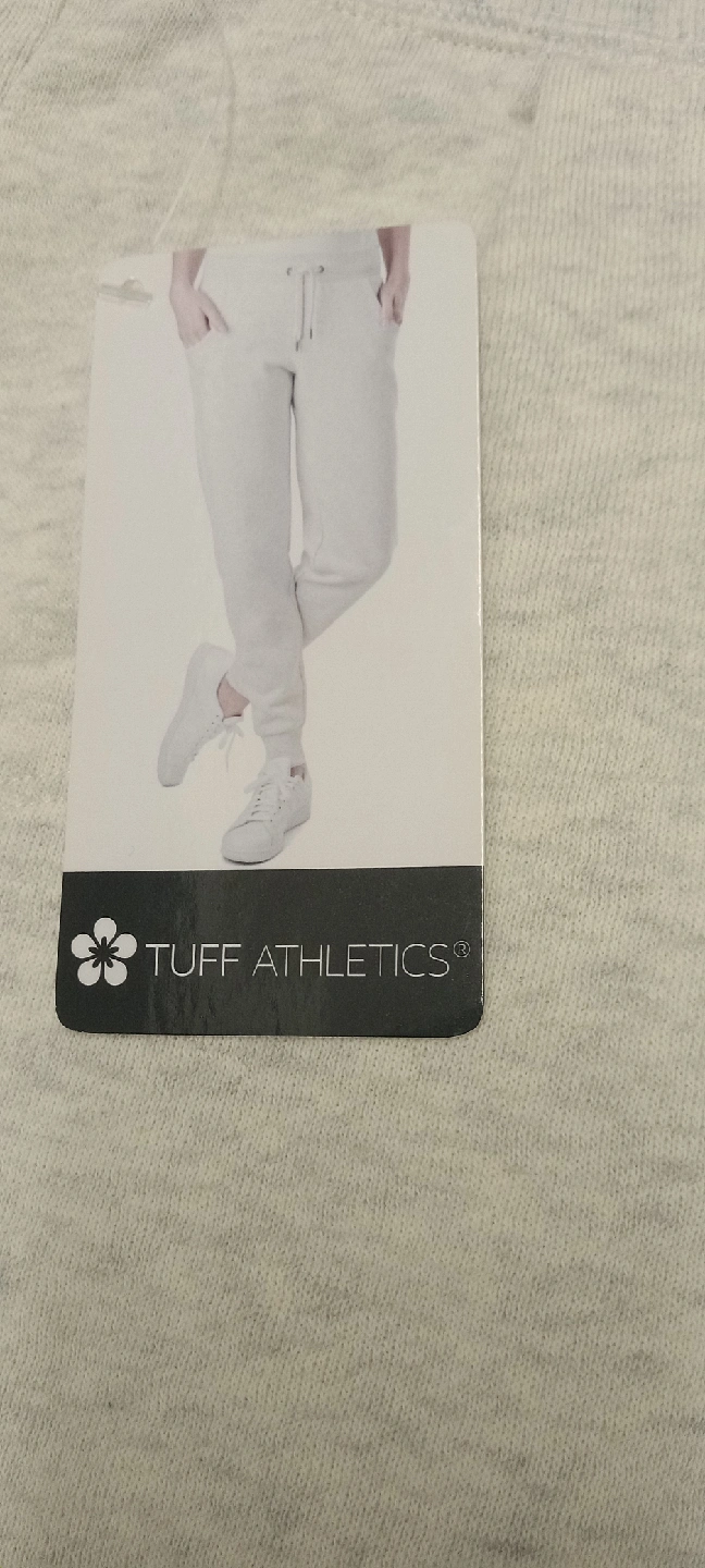 564Cozy Tuff Athletics sweatpants in a size medium! These are perfect for lounging around the house or running errands. They're a light heather grey colour and have a drawstring waist for a comfy fit it's brand new