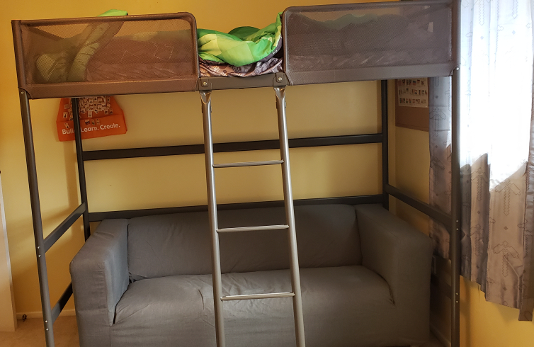 15Ikea TUFFING Loft bed frame, dark gray, Twin Mint Condition BOTH Bed & Mattress. Sofa is NOT included. Selling because not using Comes with Instructions, very easy to assemble Posted screenshot of Ikea current prices without tax.