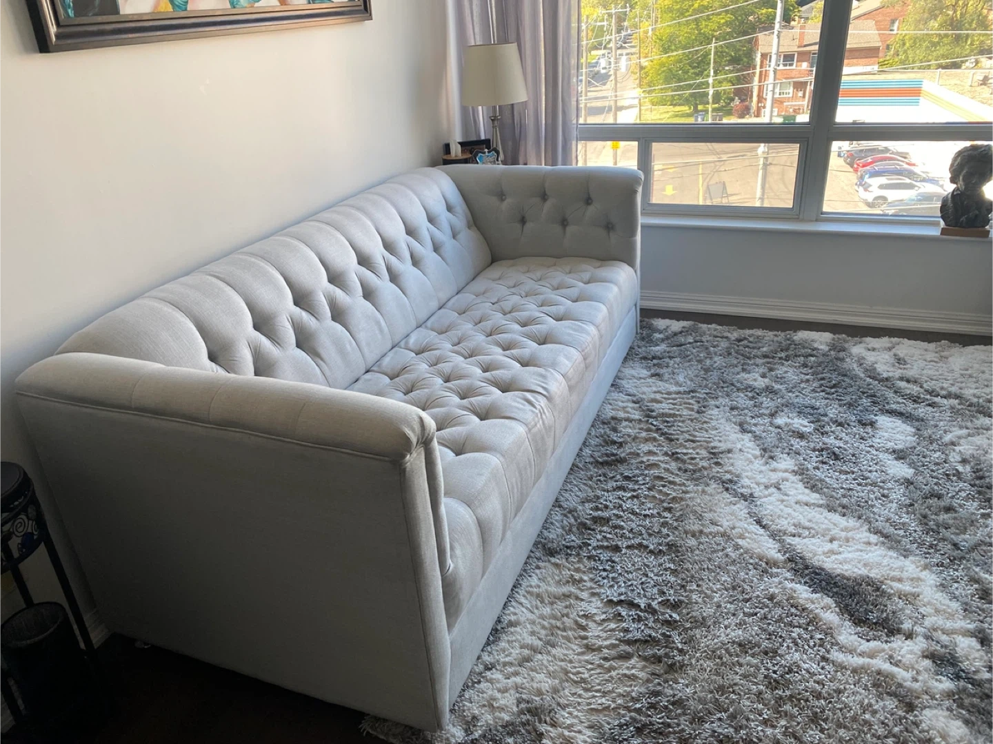 Selling a lovely light grey tufted sofa. It's in great condition and would look great in any living space! The colour is a neutral light grey. Pick up at BAYVIEW AND EGLINTON