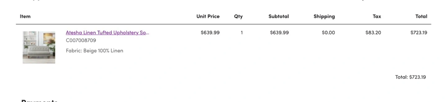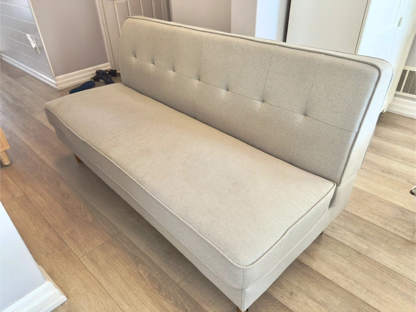 10Selling a comfy Atesho Linen Tufted Upholstery Sofa! It's in great shape and perfect for adding a touch of elegance to your living space. - Overall dimensions: 33.7" H x 64.5" W x 28.6" D - Seat dimensions: 17.5" H x 65.8" W x 21.5" D - Made with beige 100% linen fabric - Originally bought for $723.19 from Wayfair
