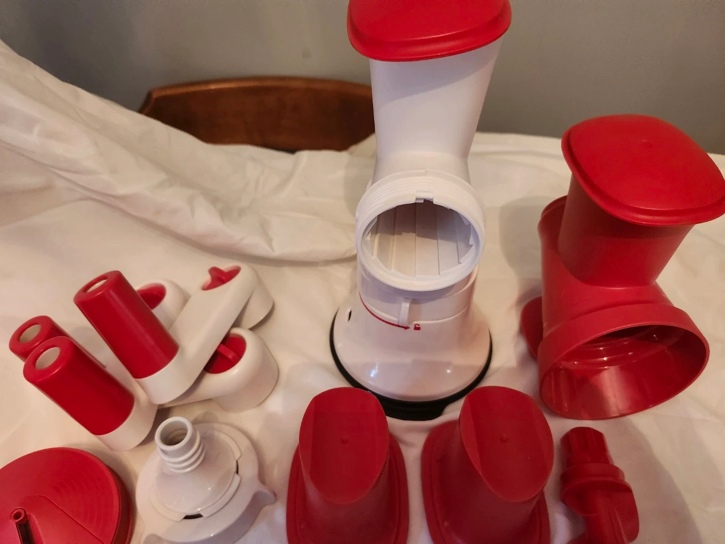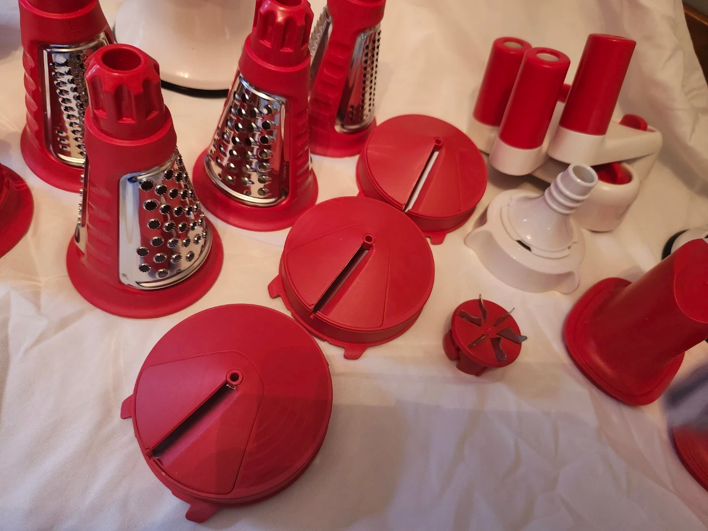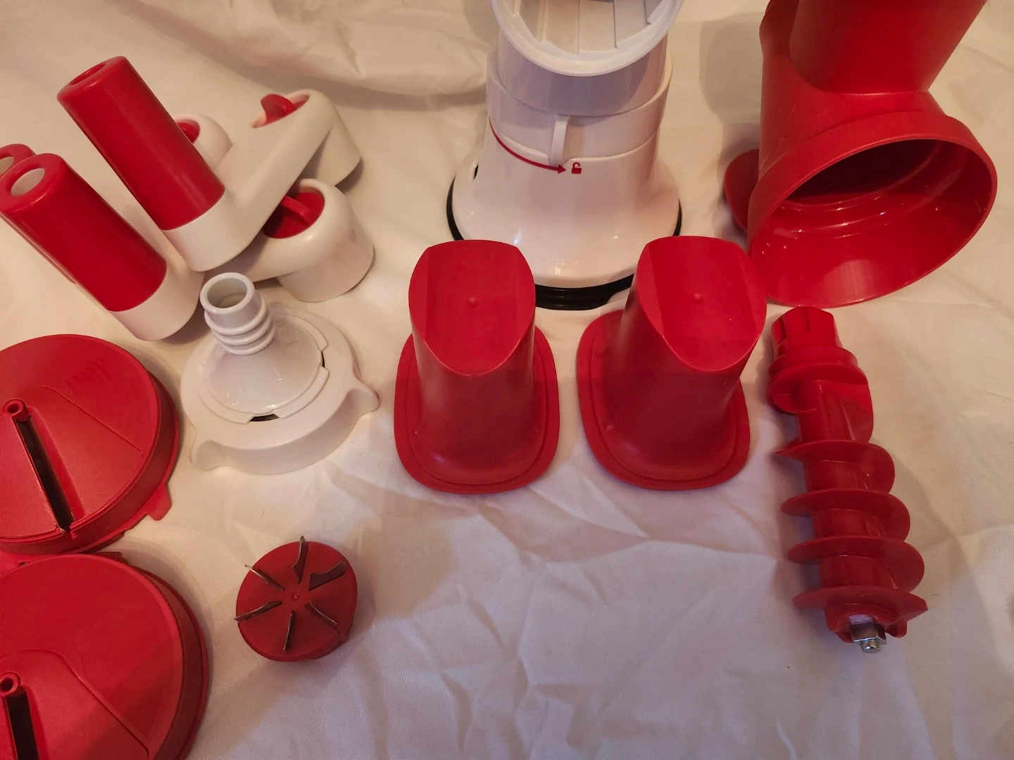 5I'm selling a Tupperware Fusion Master System! It's in great shape and ready for a new kitchen. This versatile system can handle all sorts of food prep tasks, from grinding meat to making pasta. It includes a variety of attachments to help you create delicious meals with ease Comes with multiple extra attachments basically 2 sets plus more