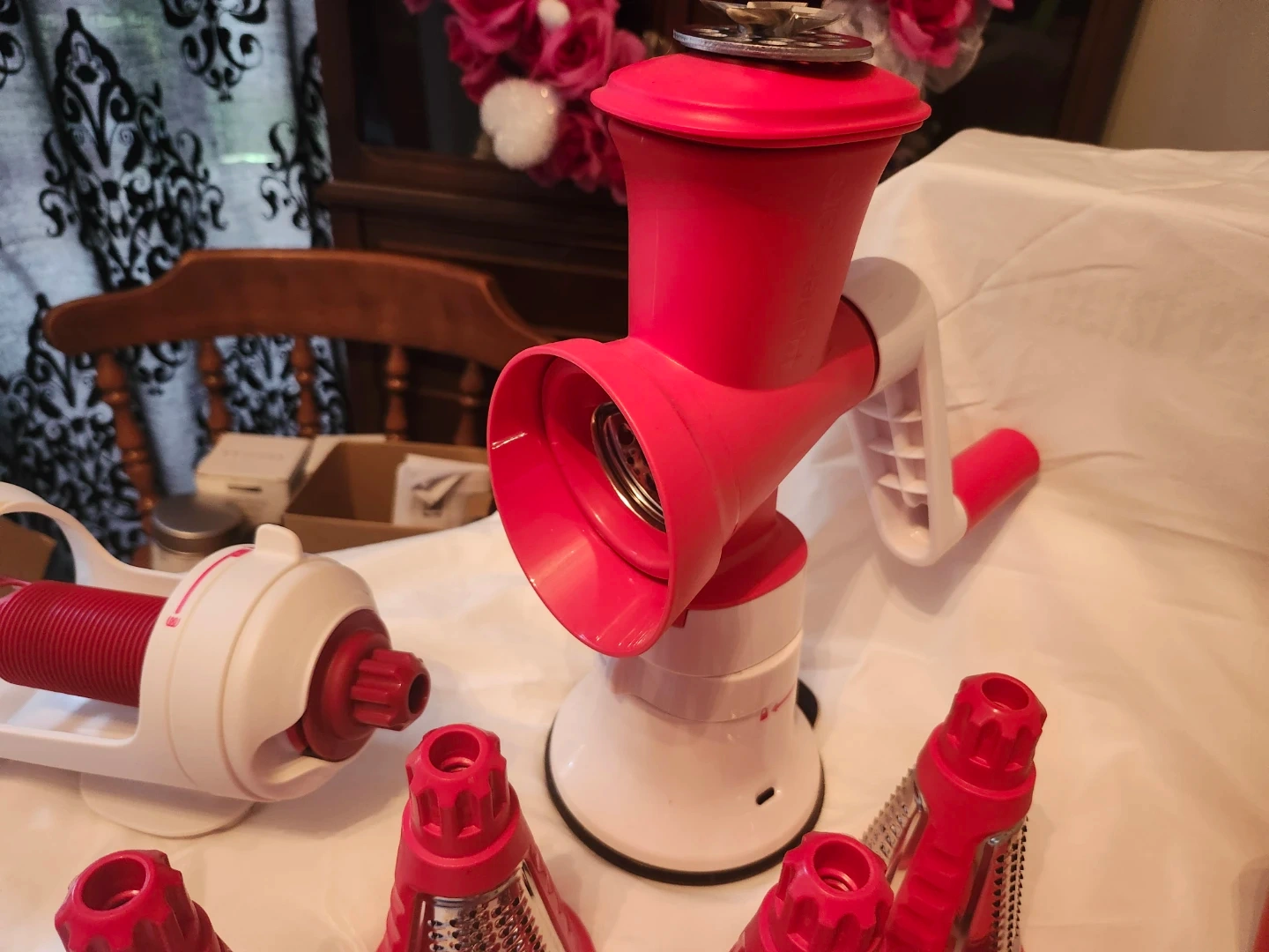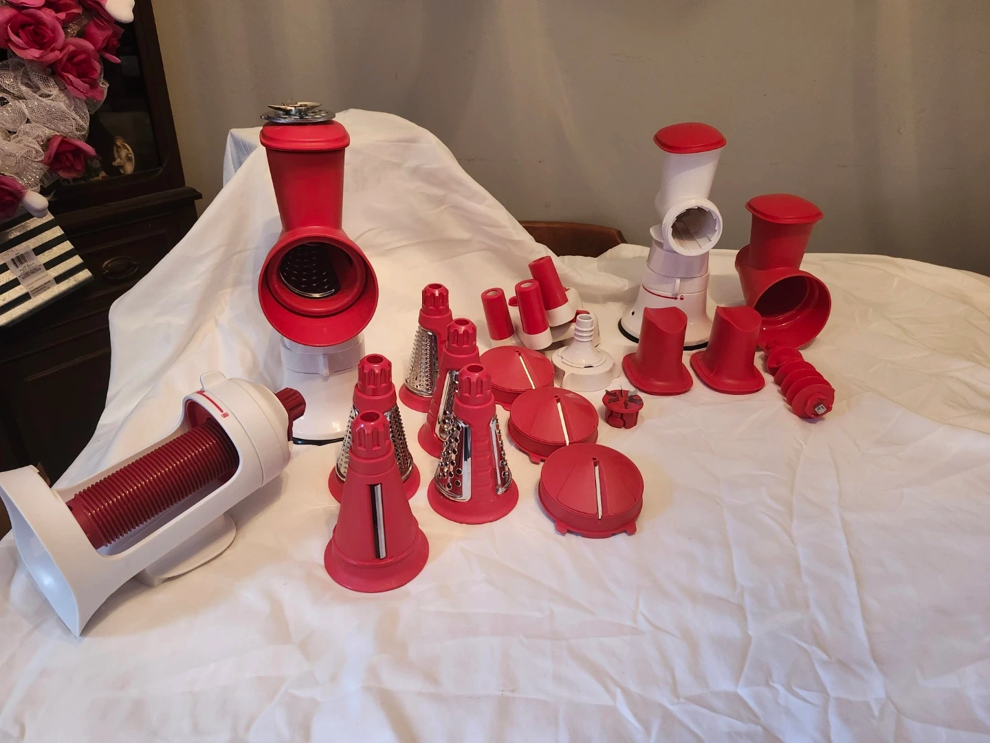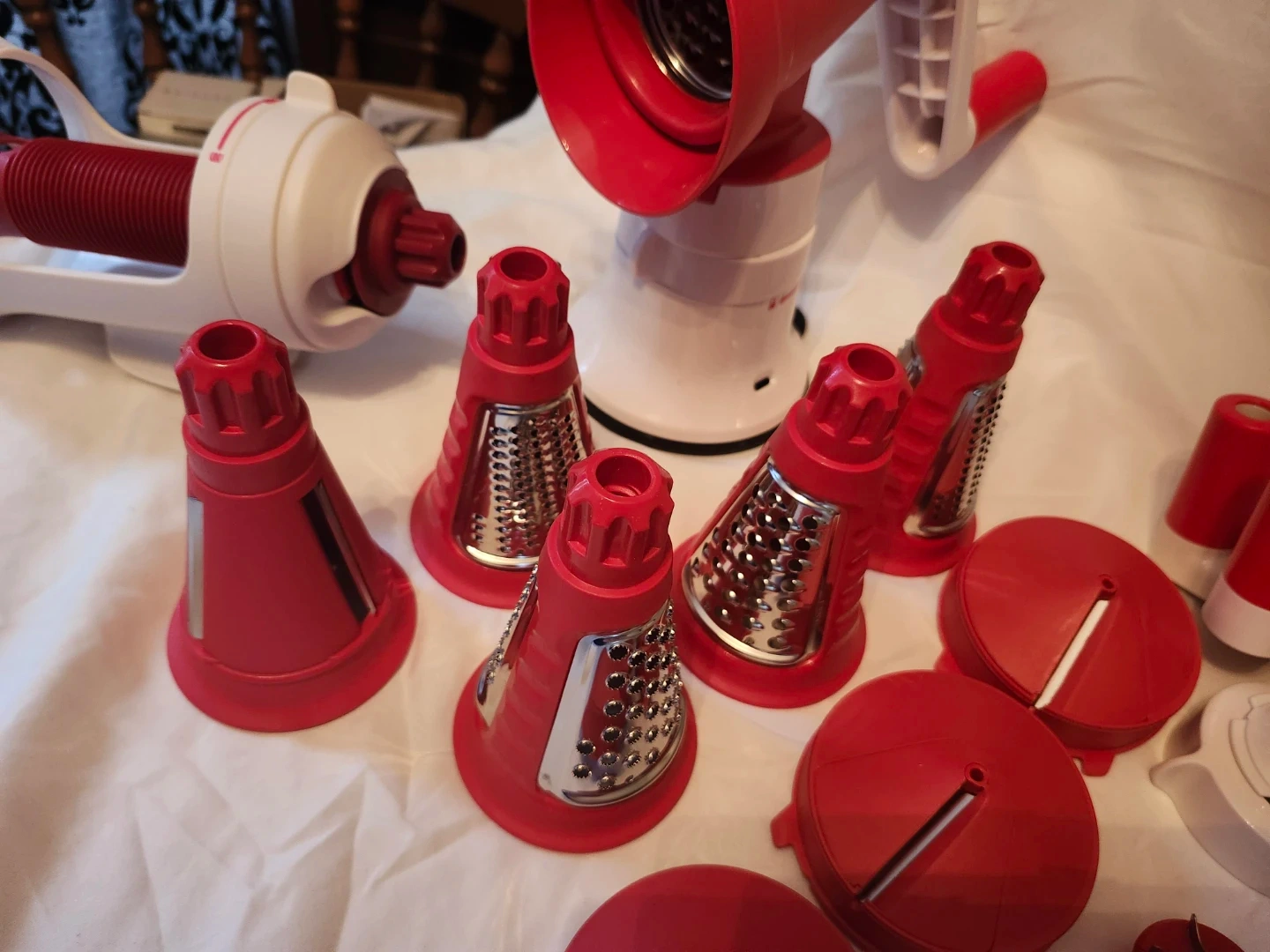 5I'm selling a Tupperware Fusion Master System! It's in great shape and ready for a new kitchen. This versatile system can handle all sorts of food prep tasks, from grinding meat to making pasta. It includes a variety of attachments to help you create delicious meals with ease Comes with multiple extra attachments basically 2 sets plus more