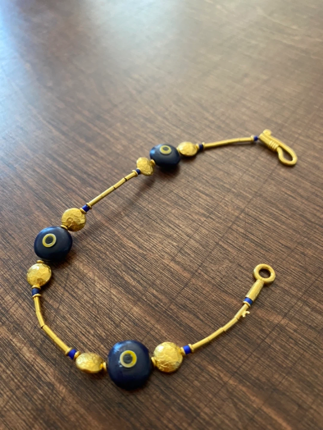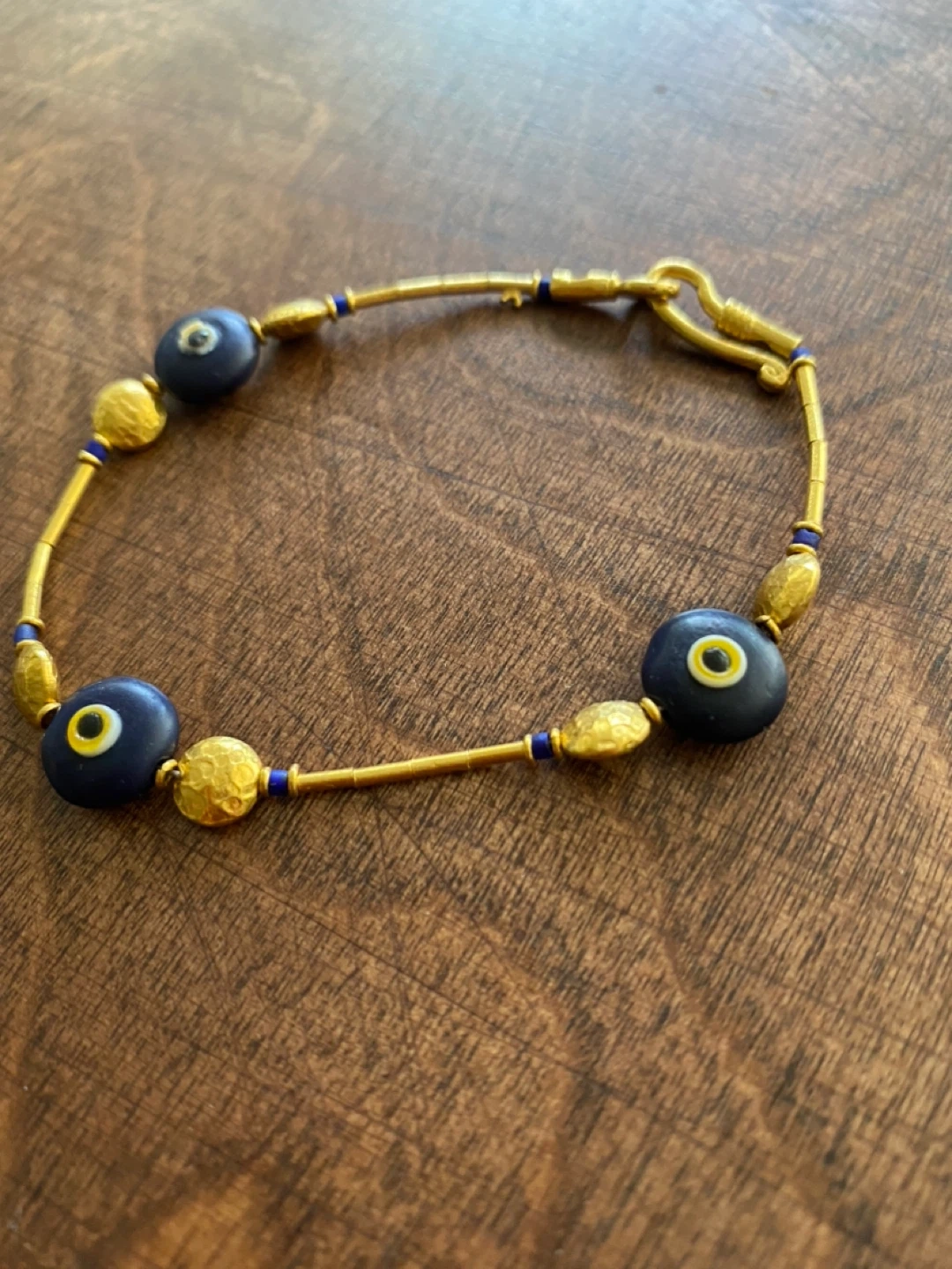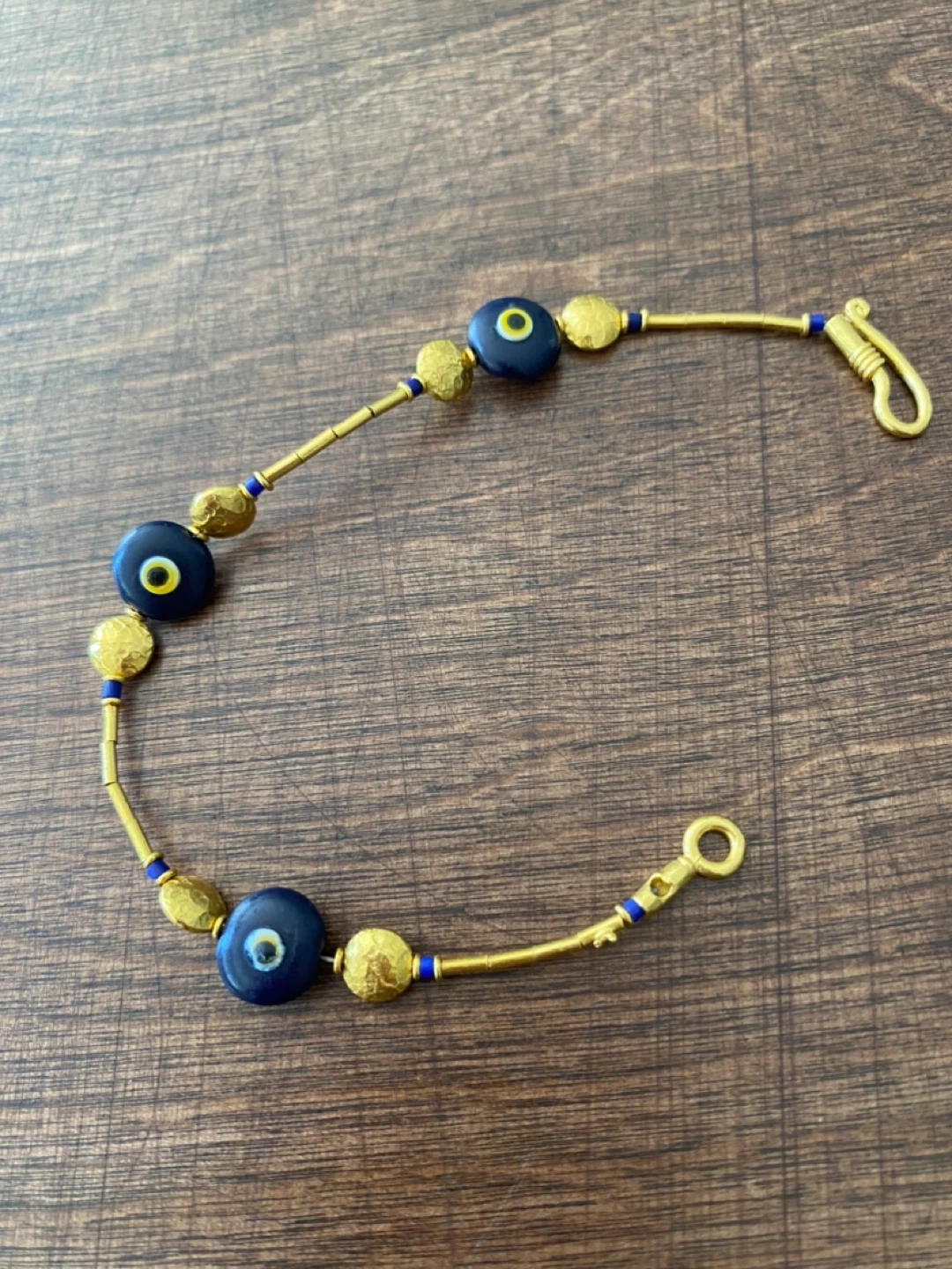 116Selling a unique 18 carat pure gold Turkish bracelet featuring evil eye charms.