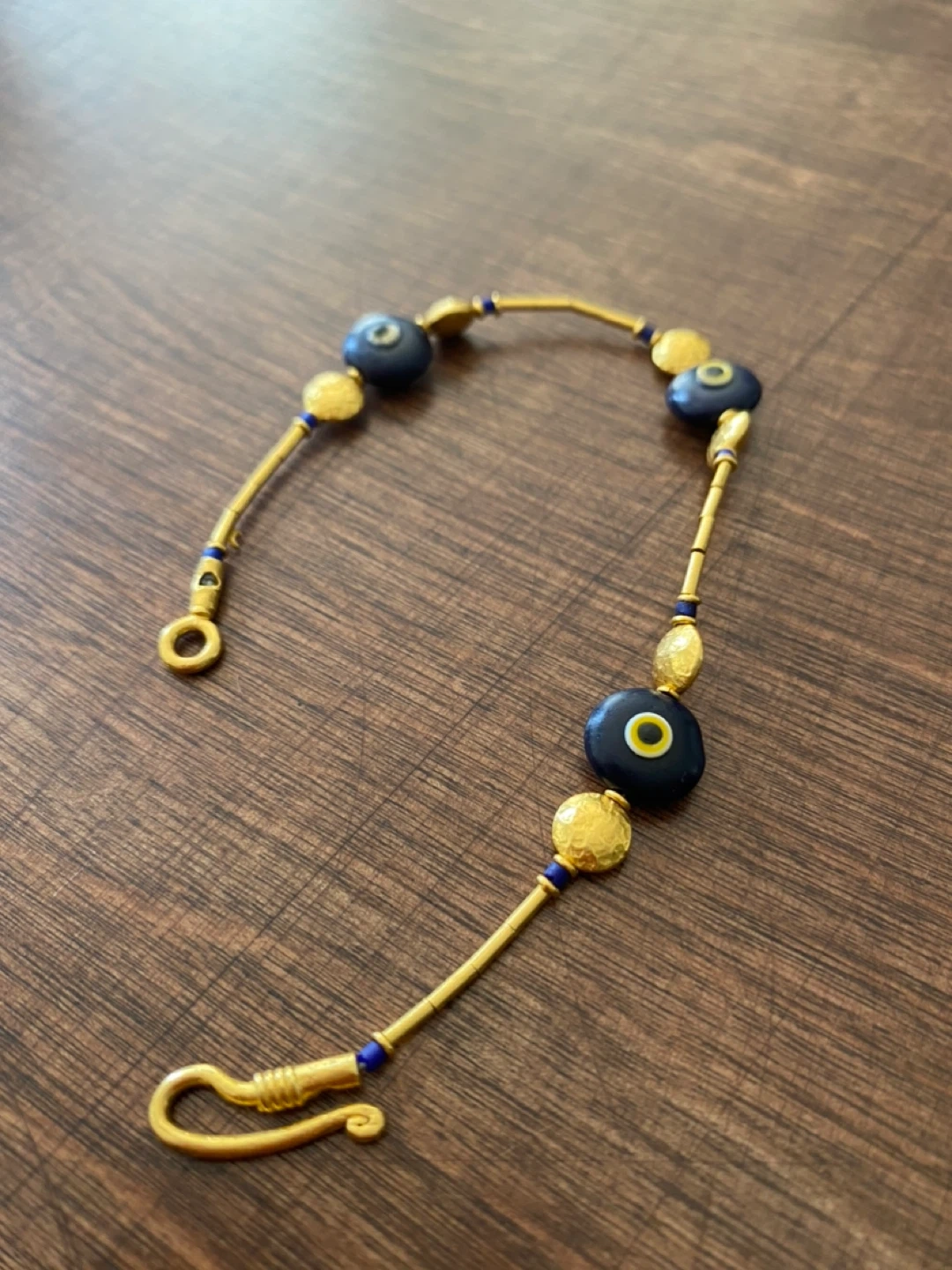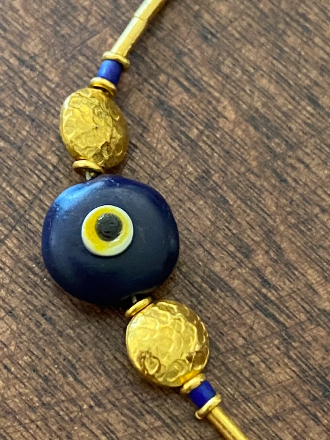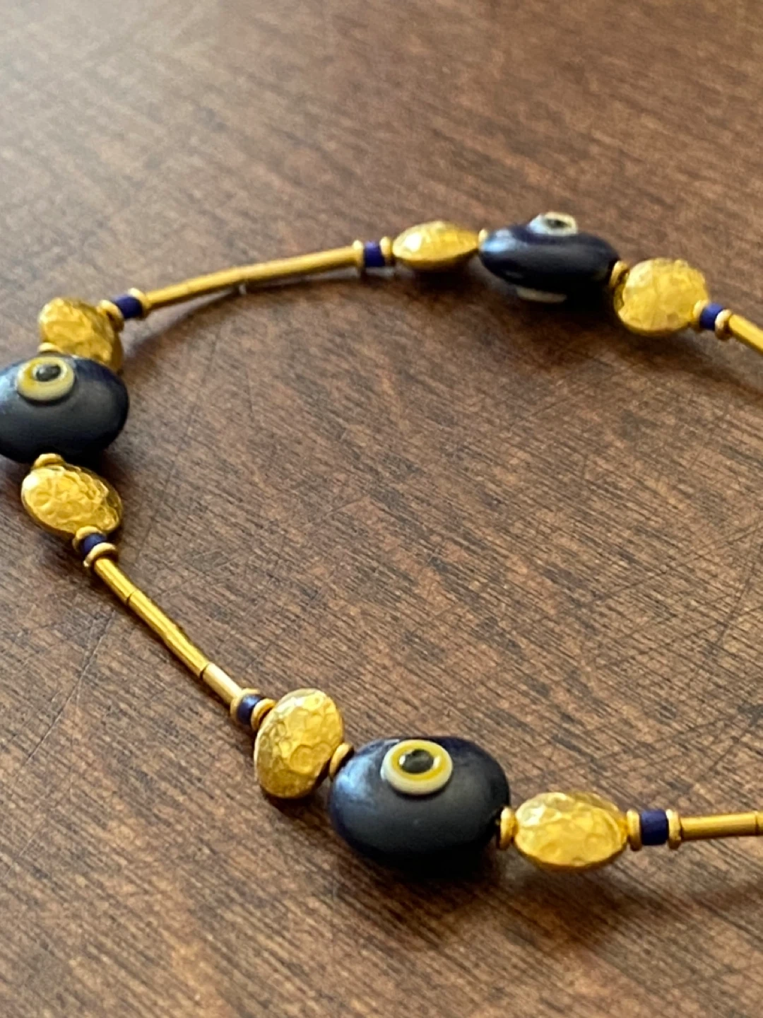 116Selling a unique 18 carat pure gold Turkish bracelet featuring evil eye charms.