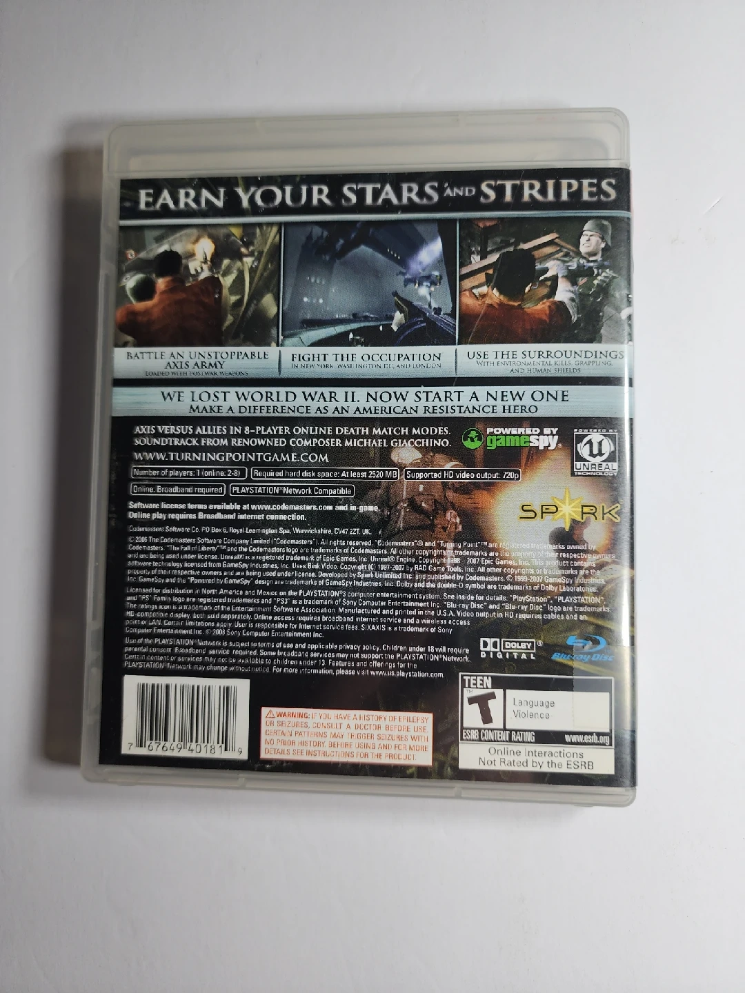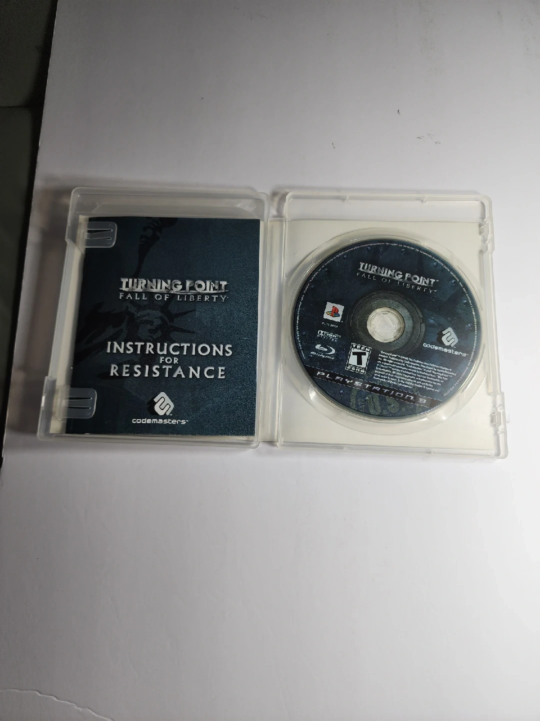 137Selling a used copy of Turning Point: Fall of Liberty for the PlayStation 3 (PS3). Includes the game disc and instruction manual. Rated T for Teen.