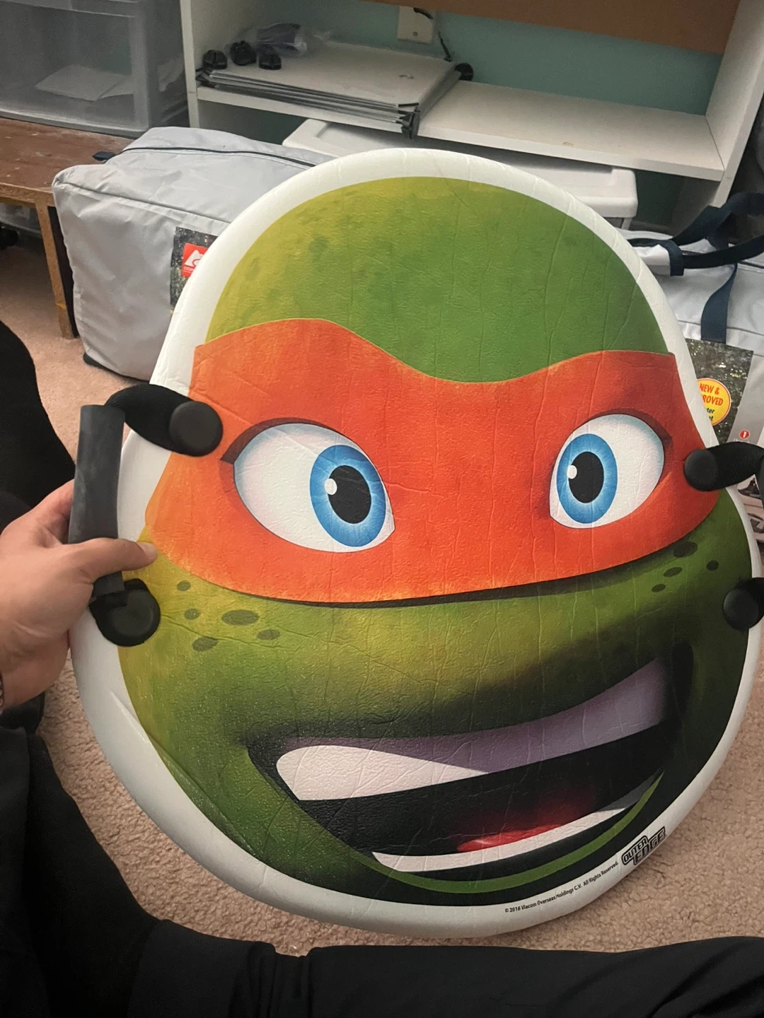 Have some fun in the snow with this cool turtle snow sled! It features a Teenage Mutant Ninja Turtle design, making it a hit with kids. Perfect for winter adventures and snowy days