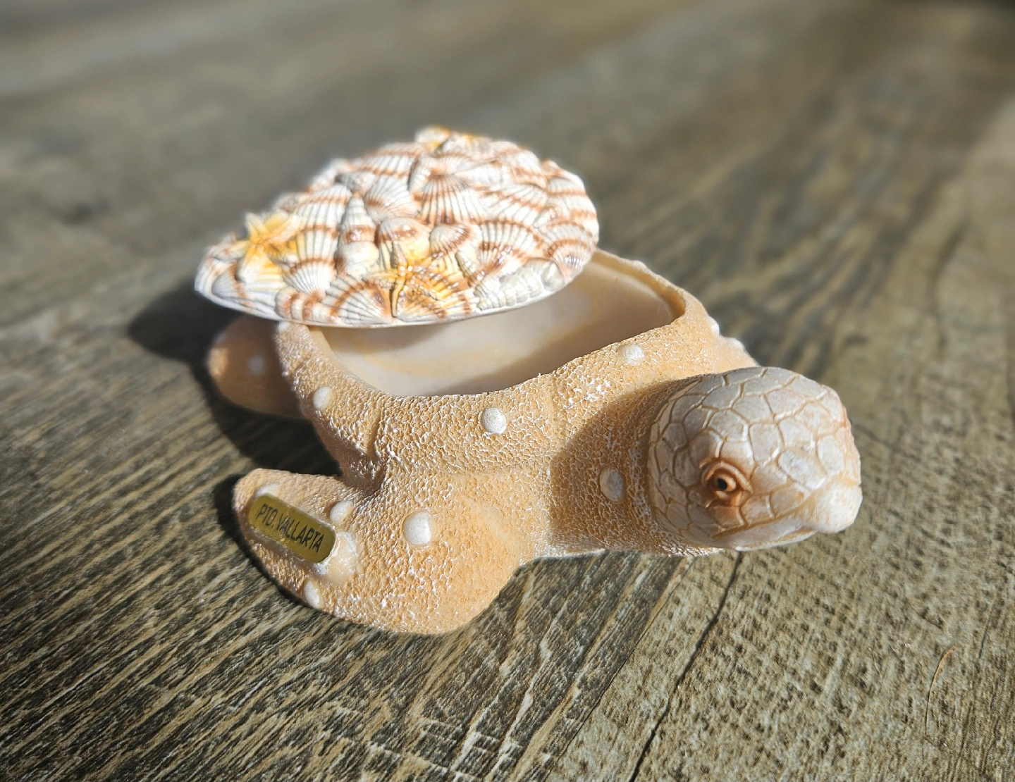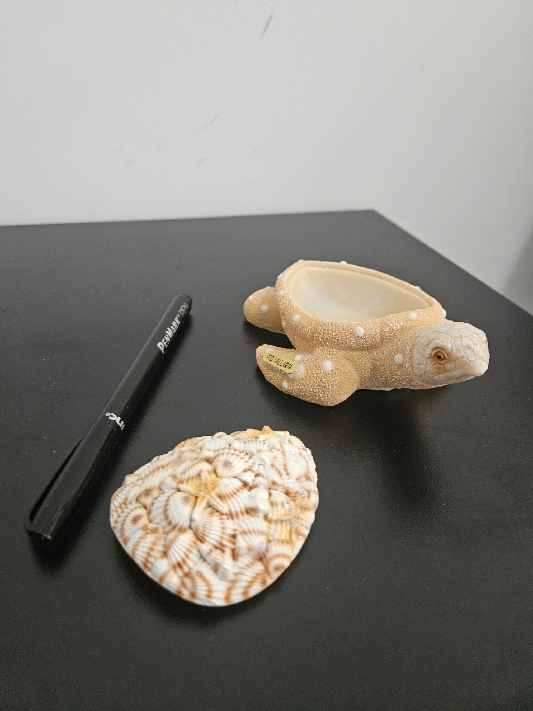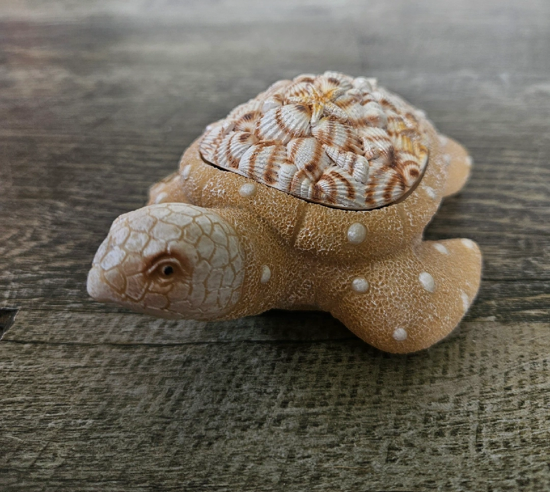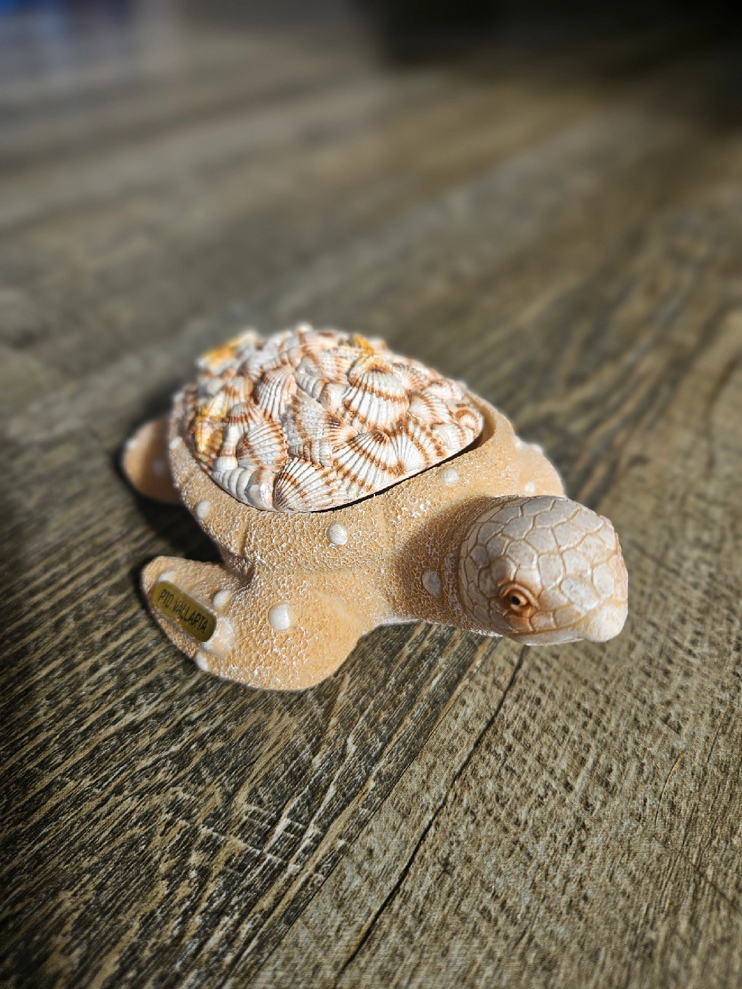 This is a cute turtle trinket box with a shell lid. Bought at Puerto Vallarta, Mexico