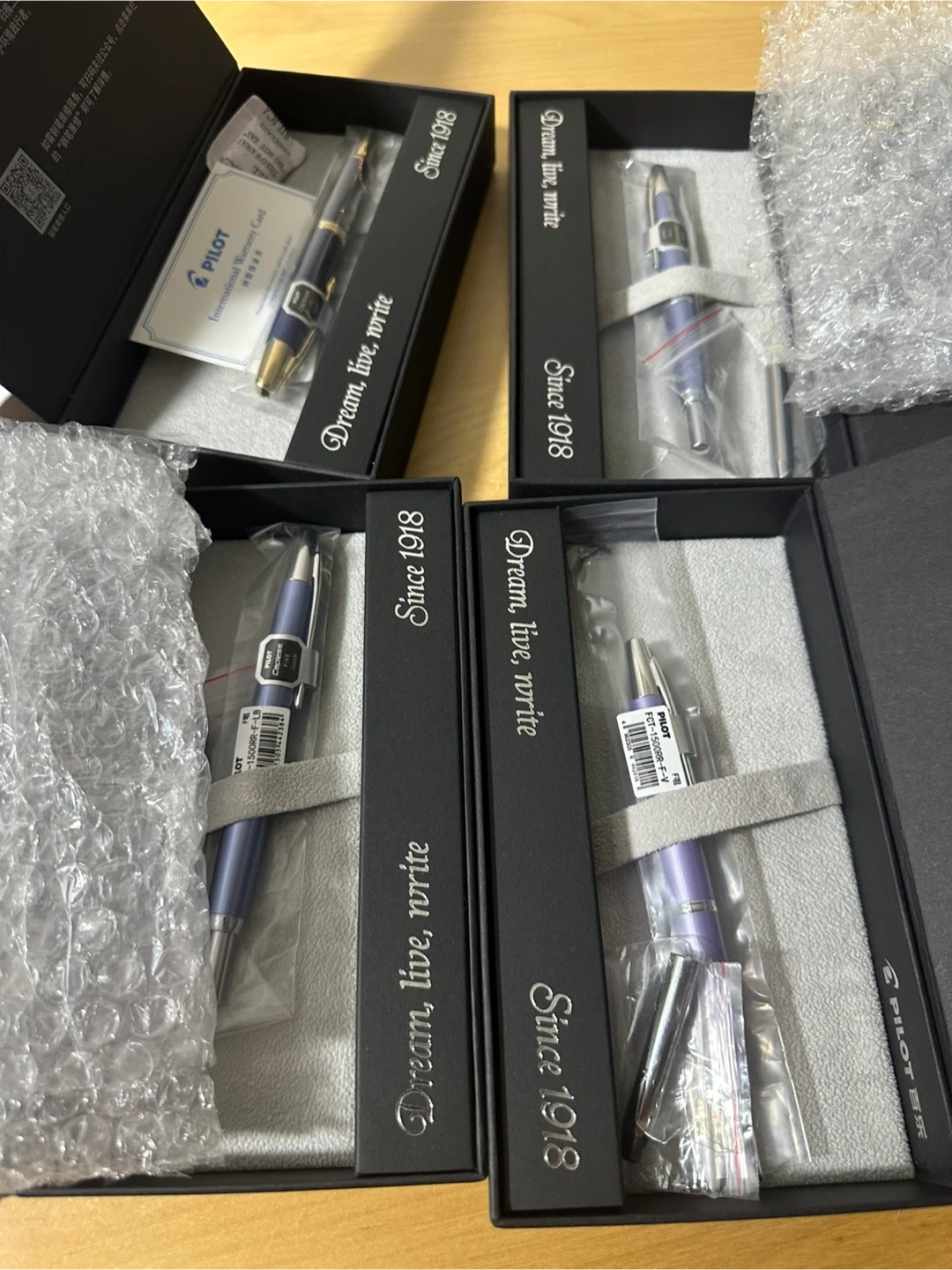 All pens are unused, with 18K gold F nibs.