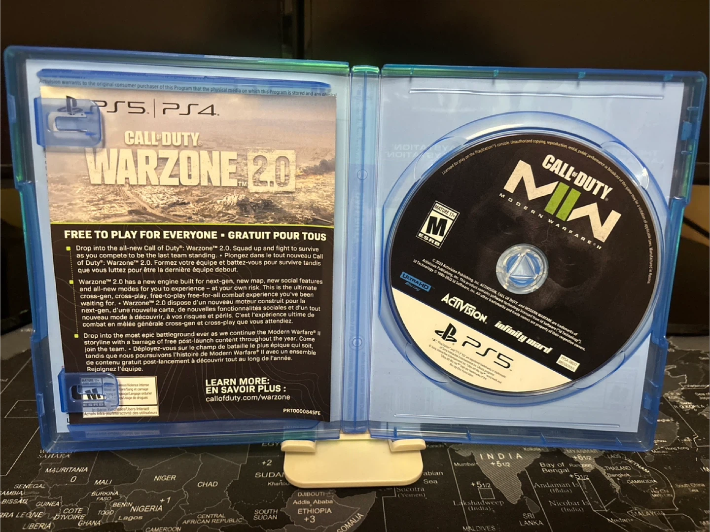 This is Call of Duty: Modern Warfare II for PlayStation 5 and PlayStation 4. It includes campaign, multiplayer, and special ops modes. The game disk is included in the case.