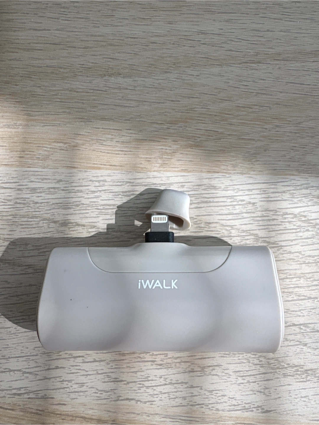 This is an iWALK portable power bank with a Lightning connector. It's designed as a keychain for easy carrying. Features a 3.6V 2800mAh battery capacity. This charger is super handy when you need a quick top-up on your phone!
