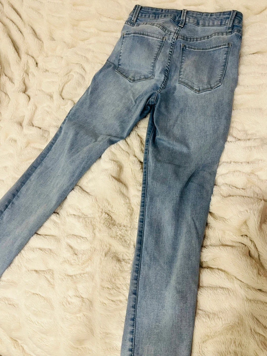 Refuge Miami skinny jeans in a light wash. Size 5, with a zipper fly. Made from denim material. Some stretch.