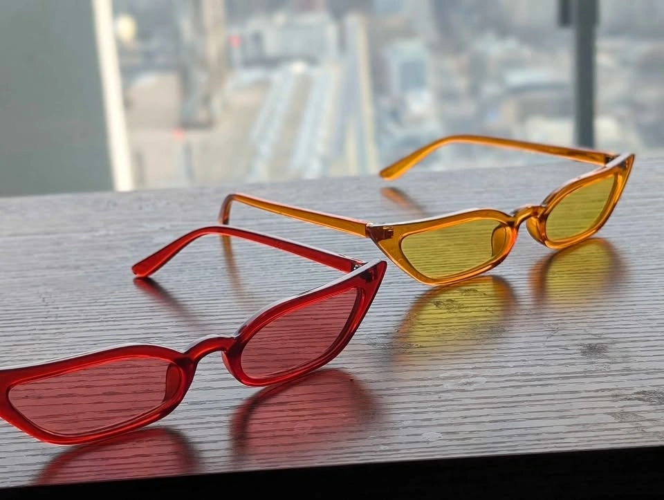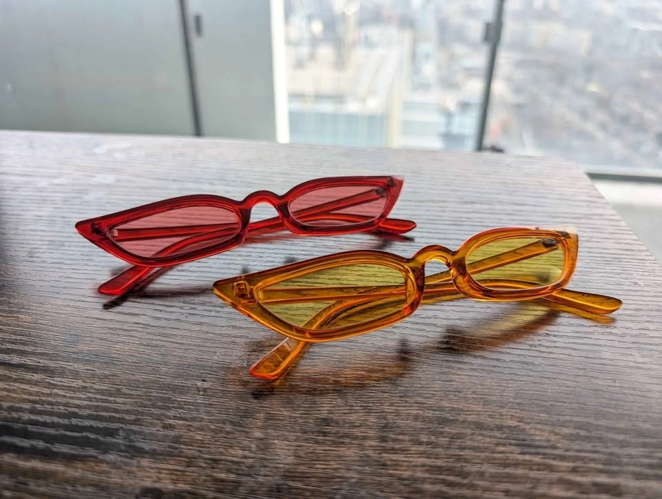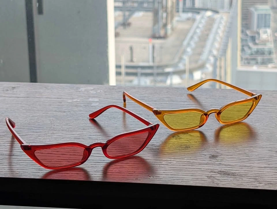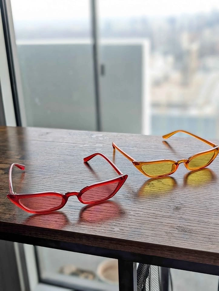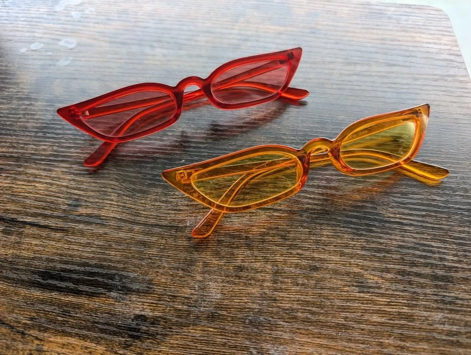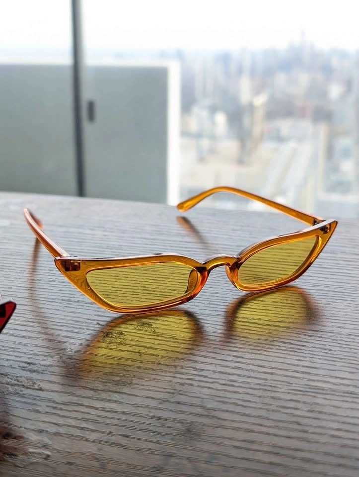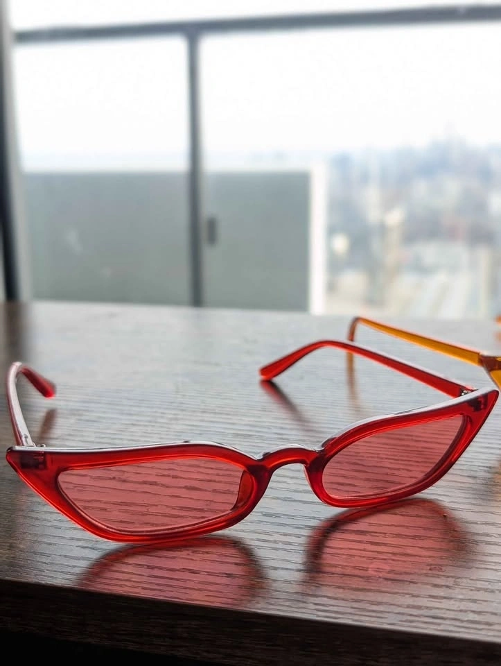 Matching red and orange pairs of thin, angular sunglasses. Super cute shape. $5 per pair. Please have a look at my other sunglasses and items. Pickup Yonge & Eglinton across from Eglinton station at the Starbucks.