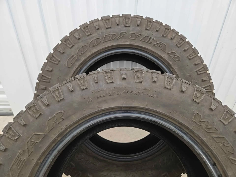Two Goodyear Wrangler Duratrac tires, size 265/65R18. They are in great condition with full treads. A good option if you need a pair. Asking $275 for both.