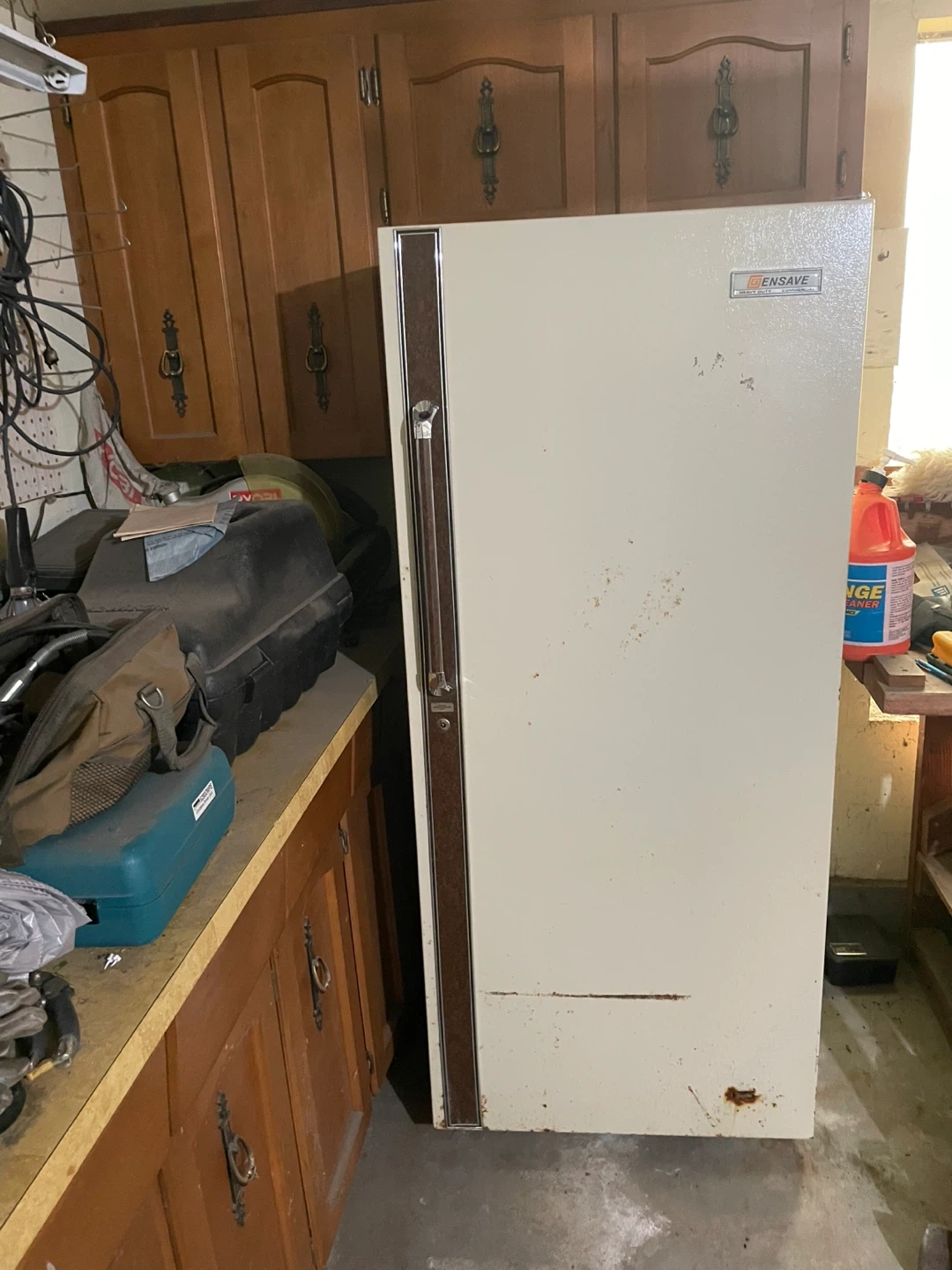 Really good reliable old freezer. Ensave heavy duty commercial. This thing has never let me down, but I just got given another newer one so this one’s gotta go. It’s taped up in a couple of places just for ceiling security but I only defrost it once a year that’s all that’s necessary. Price is OBO first come first served