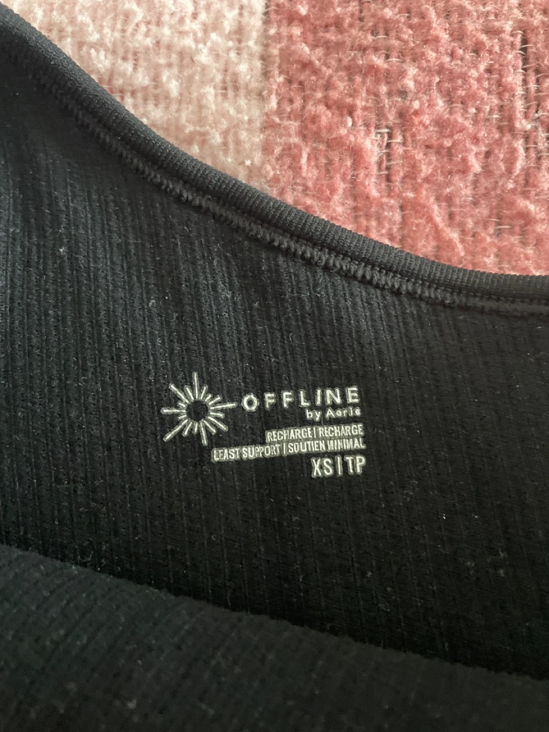 Selling a cute black tank top from Aerie's Offline Recharge line! It's a size XS and has a minimal support design. Perfect for workouts or just lounging around!