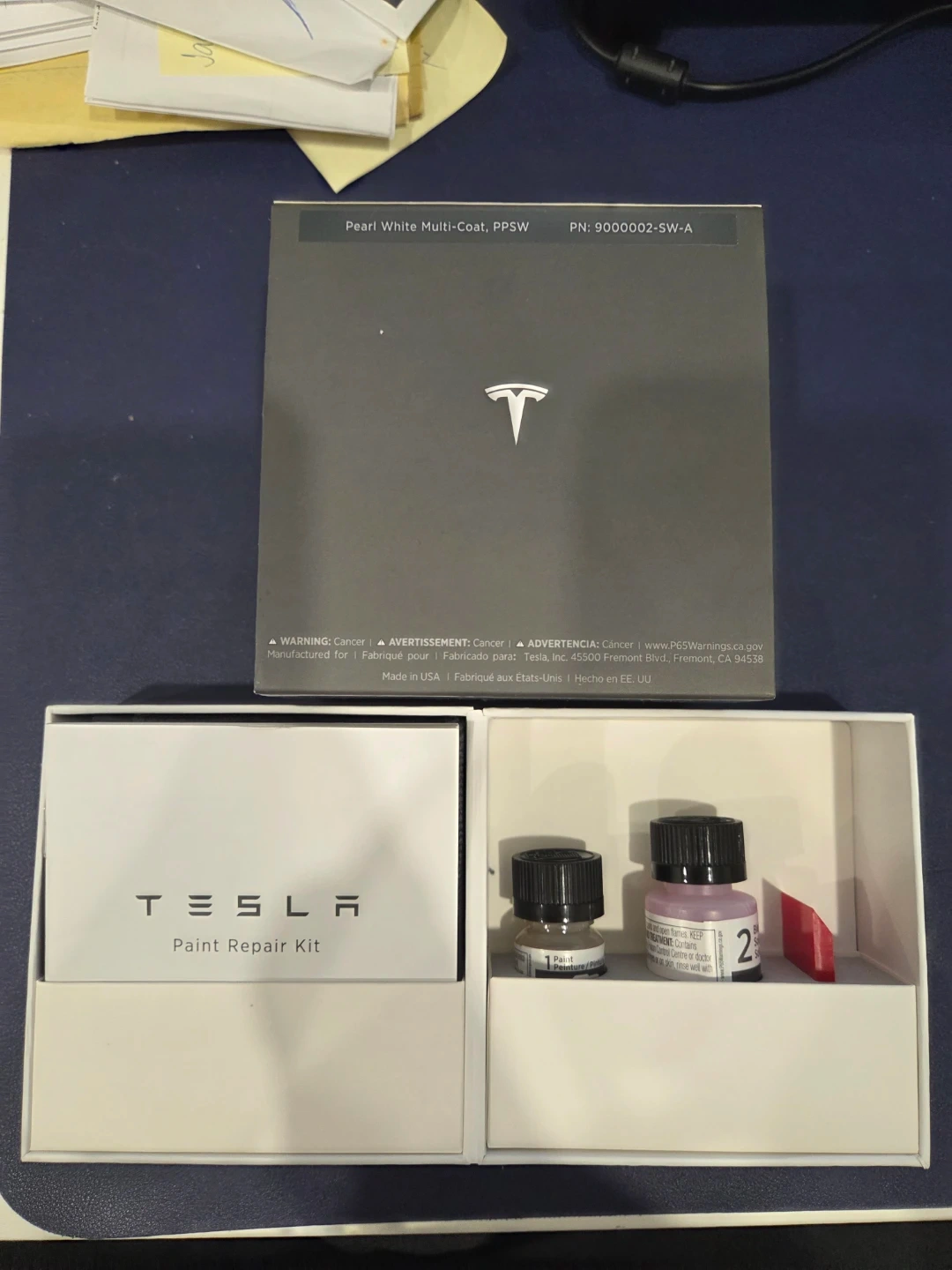 Selling a brand new, unused Tesla Pearl White Multi-Coat Paint Repair Kit! It comes with everything you need for touch-ups.