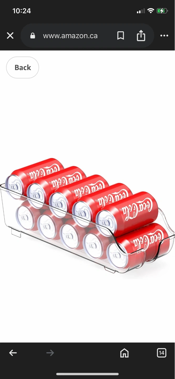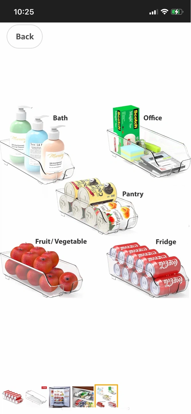 This clear plastic can dispenser organizer holds up to 10 cans. It's ideal for refrigerators, pantries, or offices. BPA-free plastic construction.