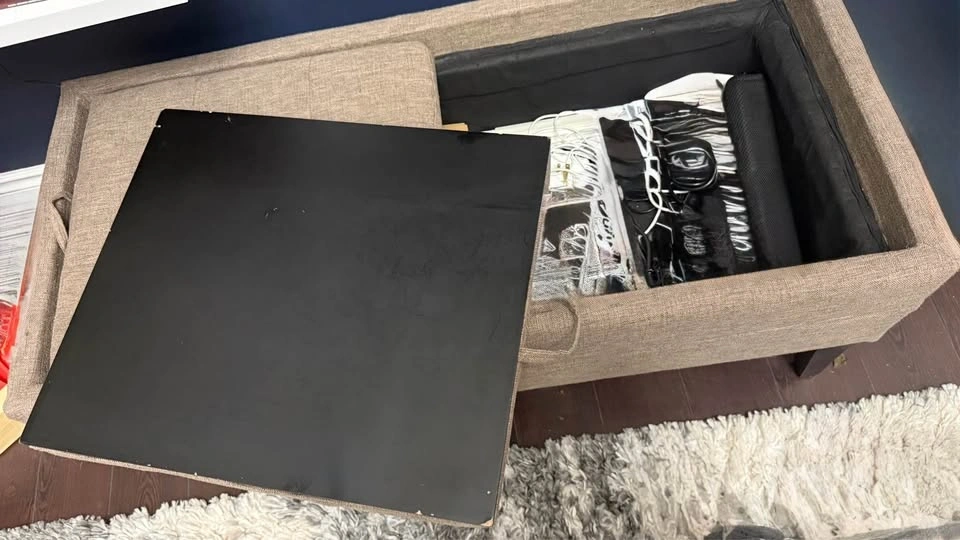 Taupe Storage Ottoman with Dual Lift-Top Lids - Coffee Table Sty