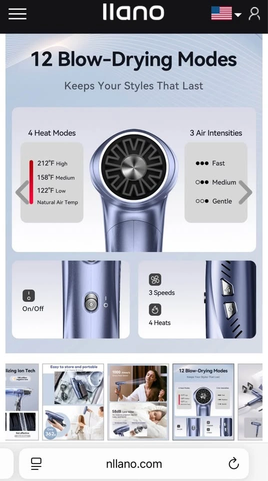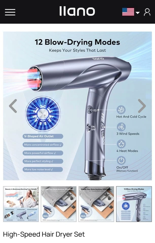 New llano Brushless Motor Ionic Hair Dryer