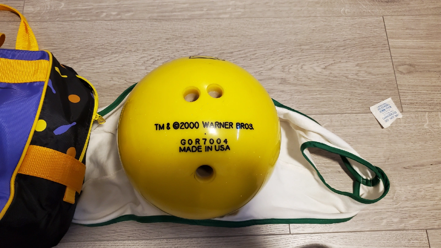 Selling a fun Tweety Bird bowling ball! It comes with a bowling bag for easy carrying and a cloth for wiping it down. Perfect for a beginner or a Tweety fan.