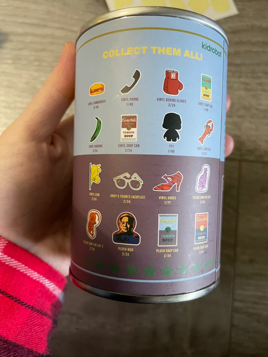 These are mystery cans each containing 1 mystery vinyl figure or plush. The odds for each item is located on the photo of the back, but you can also look it up.