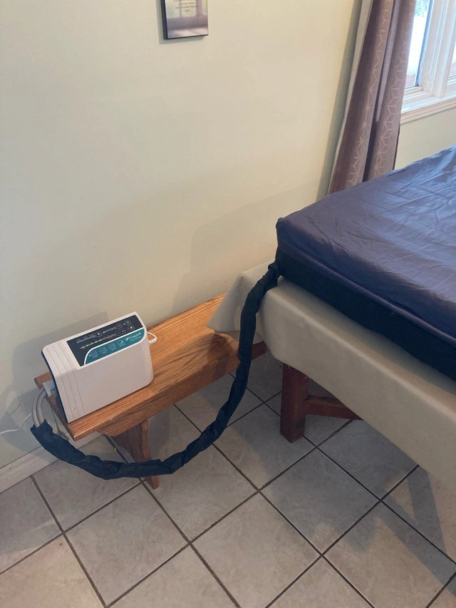 Brand new in box Protekt 6000 air mattress and pump with adjustable bed. The fully electric adjustable bed (Brand: Drive) features a remote with six buttons. It can raise/lower the entire height from 1 foot to 3 feet. The bed can incline from a lying to a sitting position and decline back to lying. It also has a knee rest for support when sitting up. The Protekt 6000 mattress is a low air loss pressure mattress with a customizable pump to adjust firmness or softness, and other modes are available. Both are brand new in manufacturers boxes, never used. Dimensions approximately 36” by 80”. For home use only. Adjustable bed: $400. Protekt 6000 mattress + Pump: $800. Buy both for $1000. Full length or half length side rails are available. Cash accepted.