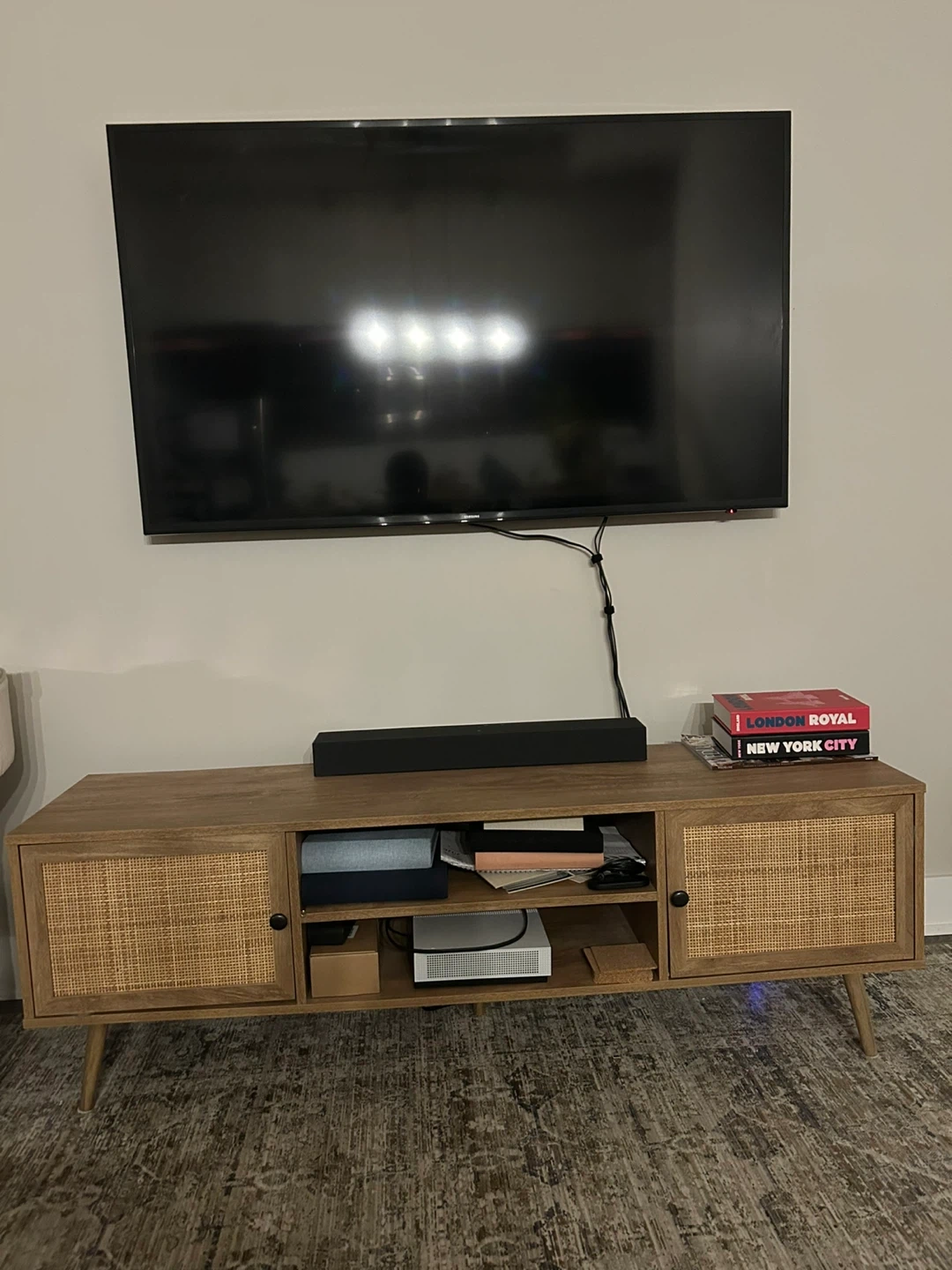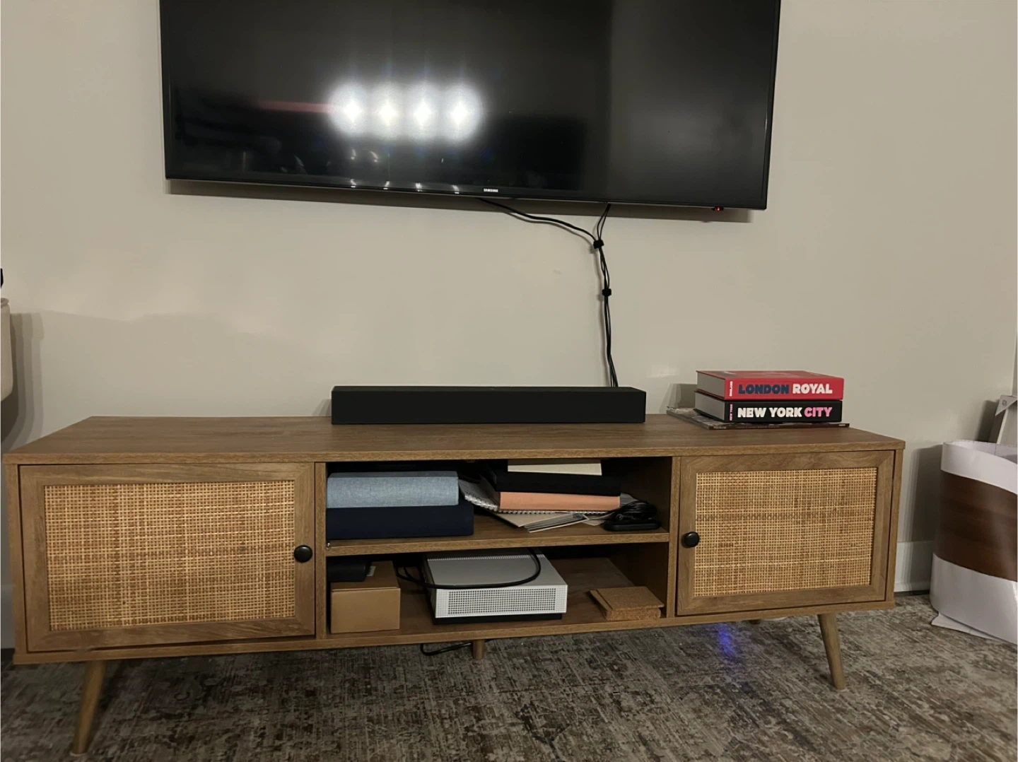 Wooden Media Console with Rattan Doors (Structube Jett)