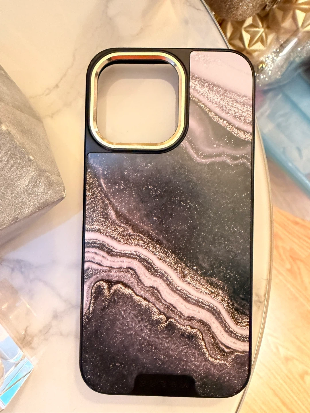 Burga cases are durable and basically indestructible. This is a Burga Elite iPhone case for iPhone 15 Pro Max with a beautiful marble design! It's in great condition and will keep your phone protected in style. The case features a black and gold frame, adding a touch of elegance to your device. Perfect for anyone looking for a stylish and durable phone case!