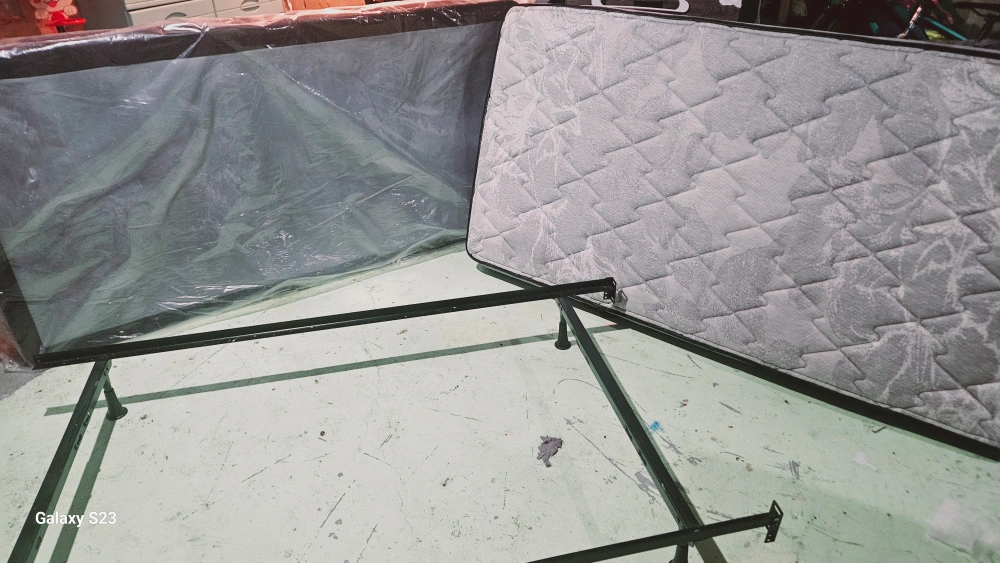 25single/twin bed brand new.Still have the plastic on them the box spings . , I also have metal bed frames I think it's a single bed.I'm used to calling it a single beds.Some people say it a twin beds But comes from a clean home No bed Bugs or anything like that
