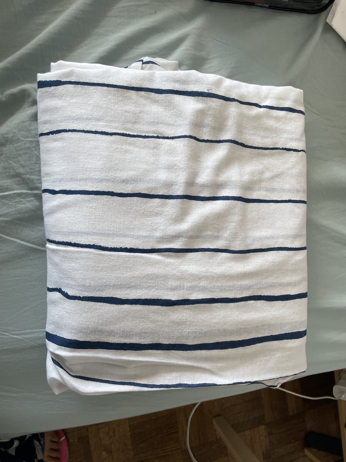 12Twin bed duvet cover, white with blue stripes. Good condition.