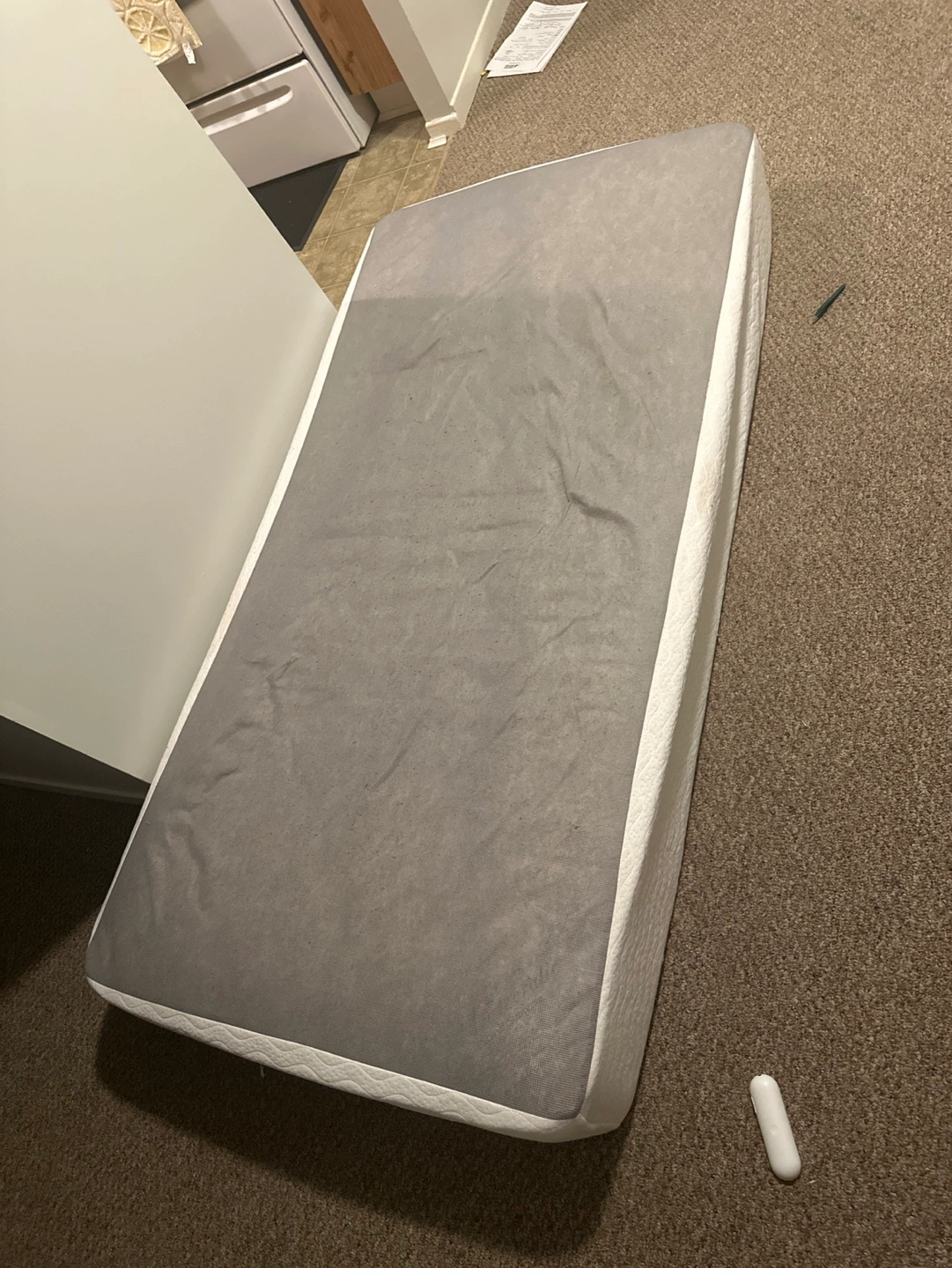 HomeBuy and sellTwin Mattress FoundationSharanWest End181 reviewSoldTwin Mattress FoundationFurniture · $50Used twin size mattress foundation. Grey fabric cover. Some minor stains.Where to meet1 chat·0 favourites·17 viewsGet the Karrot app