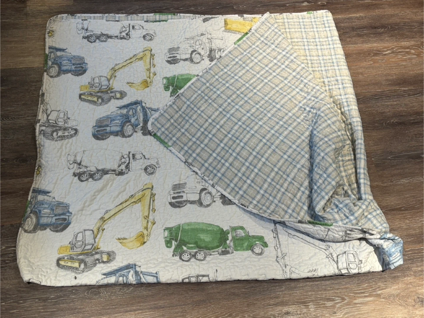 12Selling two Pottery Barn Kids quilt with a fun reversible design! One side features trucks and construction vehicles, and stripes on the back. Second one features planes on one side and squares in the back Twin size bed covers. It's in great condition and perfect for a child's room $40 for both or $25 for one