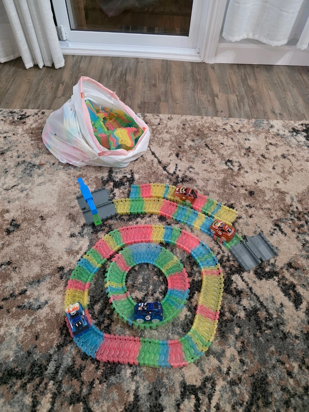 15Selling a Twister Tracks glow-in-the-dark race track set! It comes with colourful, flexible tracks and two cars. The set is in great condition and ready for a new home. Perfect for kids who love cars and building!