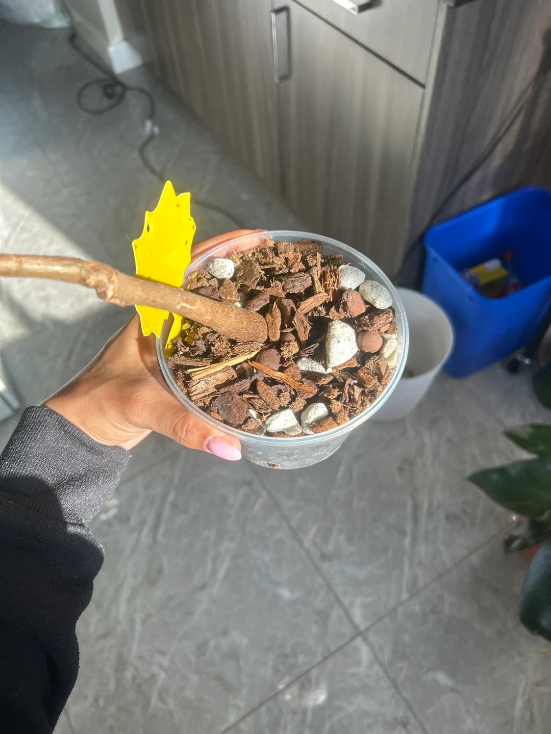 Money Tree plant. Potted in a clear plastic container with well-draining soil. Ready to be repotted or placed in a decorative planter. Separated