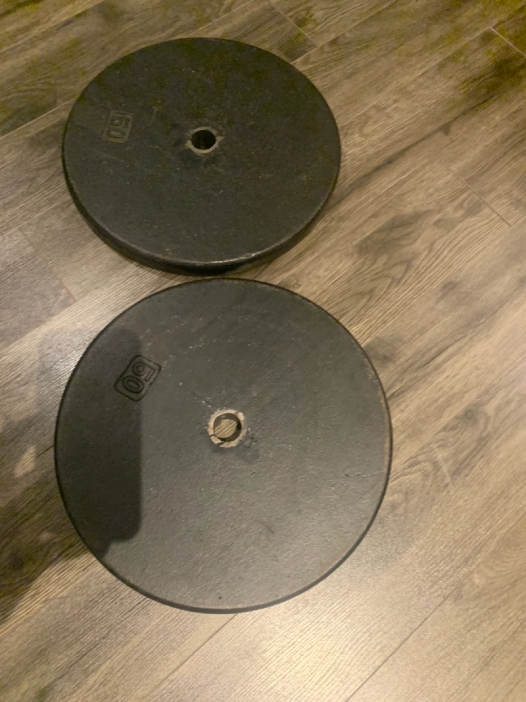 Selling two weight plates, each weighing 50 lbs. They're in good condition and ready for your home gym!