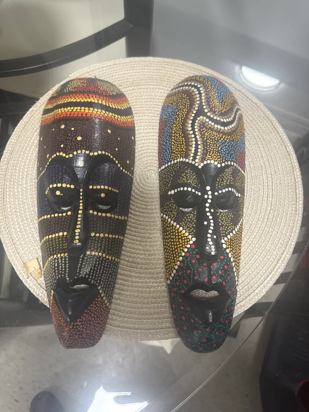 Selling two decorative African masks. They have unique designs and would look great as wall decor!