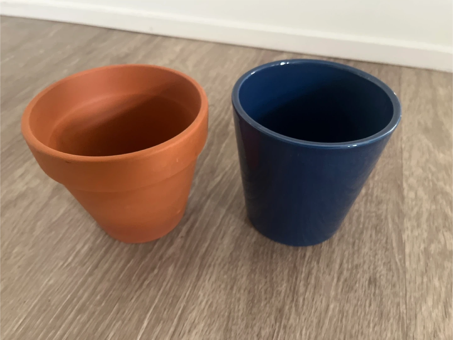 153Selling two flower pots! One is a classic terracotta colour, and the other is a nice, glossy blue colour. They're both in great shape and ready for your favourite plants