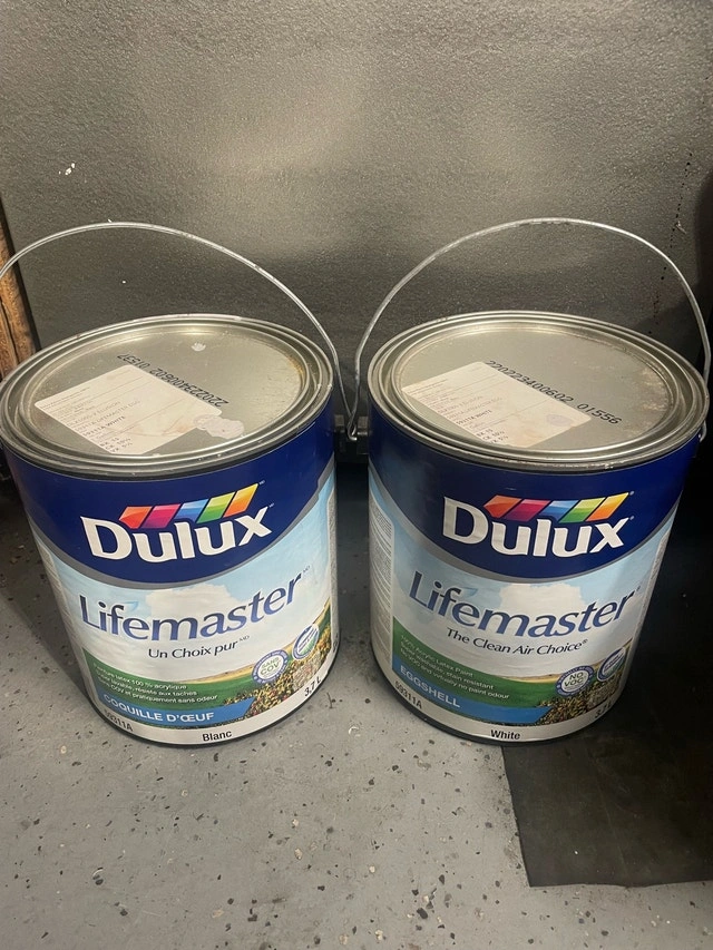 Two gallons of Dulux Lifemaster paint in an eggshell. Color: DLX1005-2 ELUSION Ideal for your project at low cost! Price firm