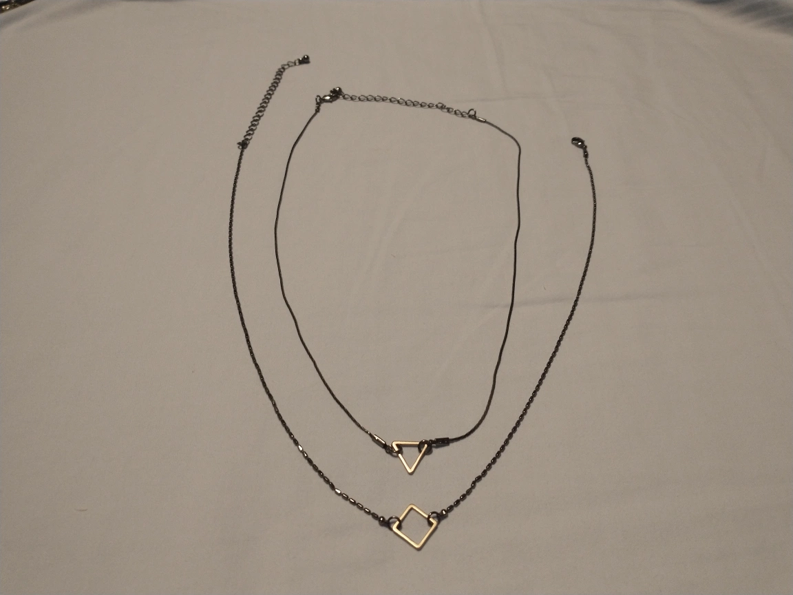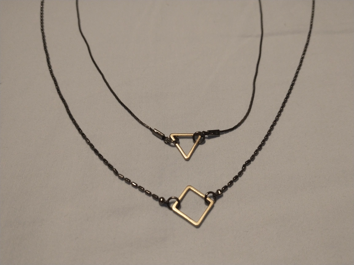 Two gunmetal necklaces with gold shape charms $6 for both Cash payment please