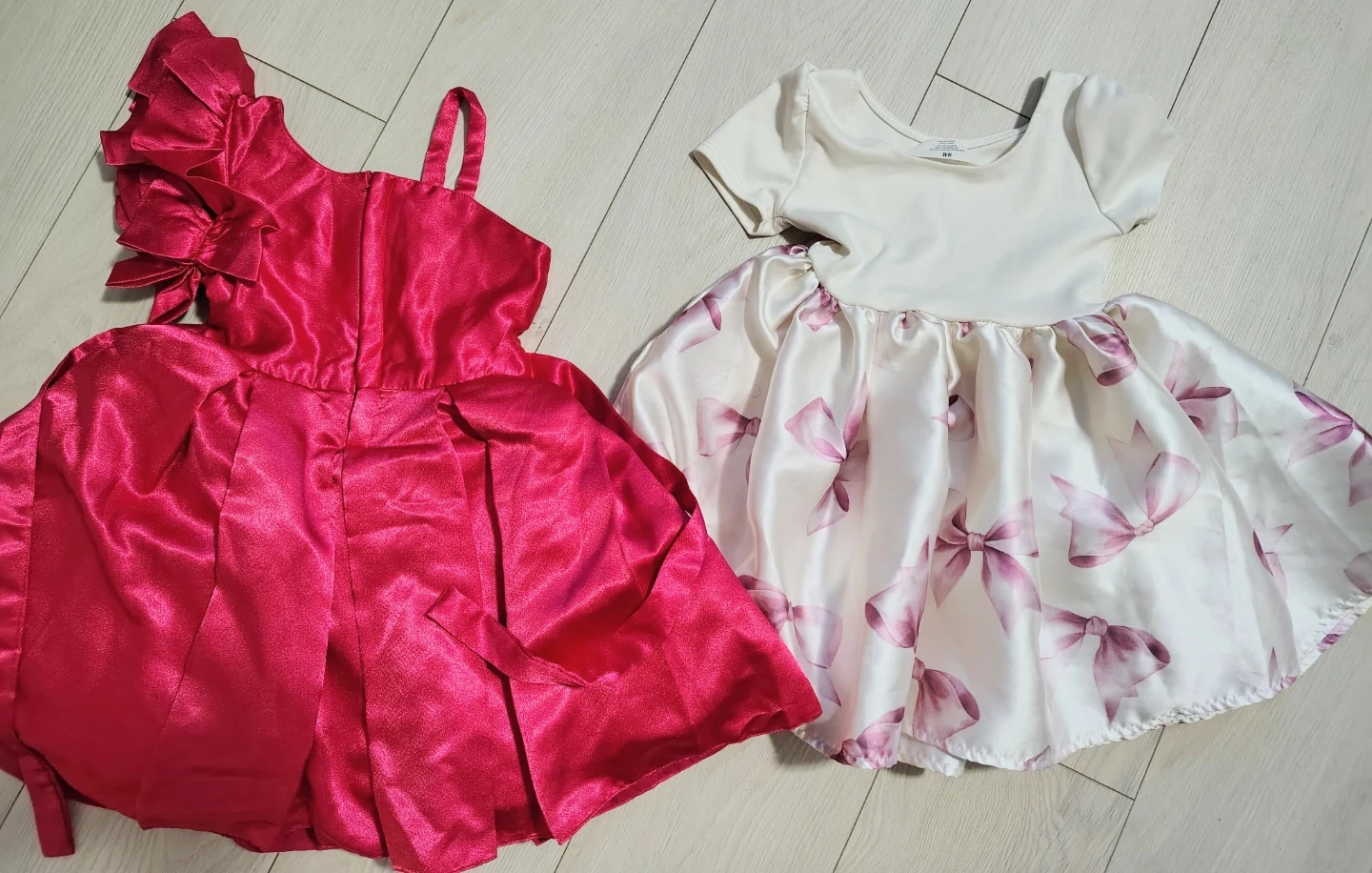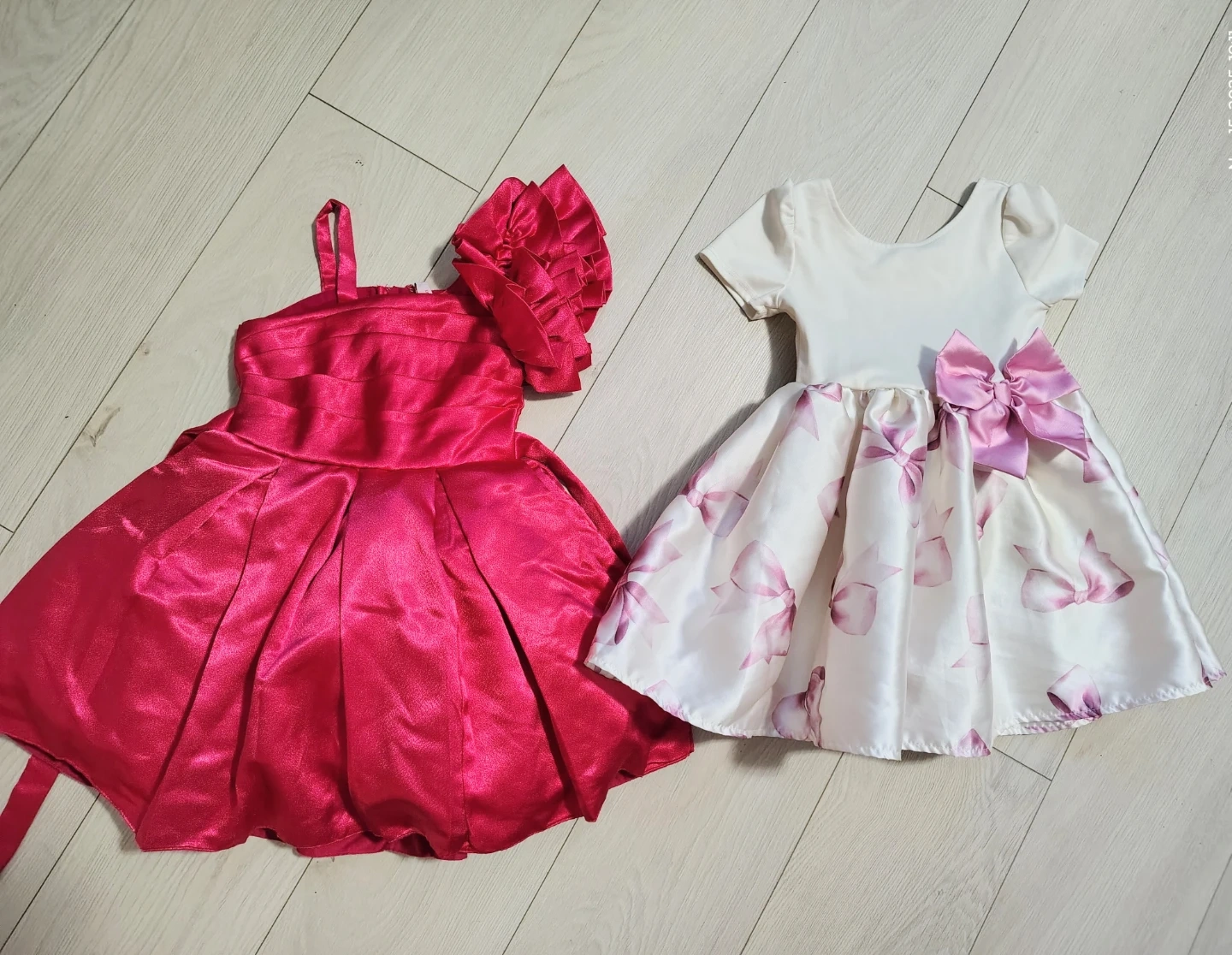 10Two adorable dresses for your little one! One is a vibrant pink, and the other features a lovely floral pattern on a white background. Perfect for parties or special occasions! Price for individual items. Smoke and pet free home.