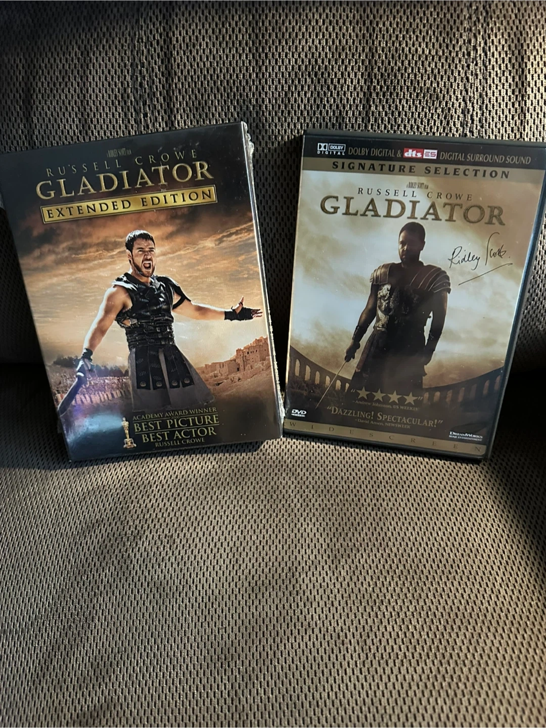 926Selling two Gladiator DVDs! One is the Extended Edition and the other is the Signature Selection. Both are in great condition! The extended edition is still sealed, Signature Section is opened, DVDs are in mint condition, have never been played. Smoke free home.