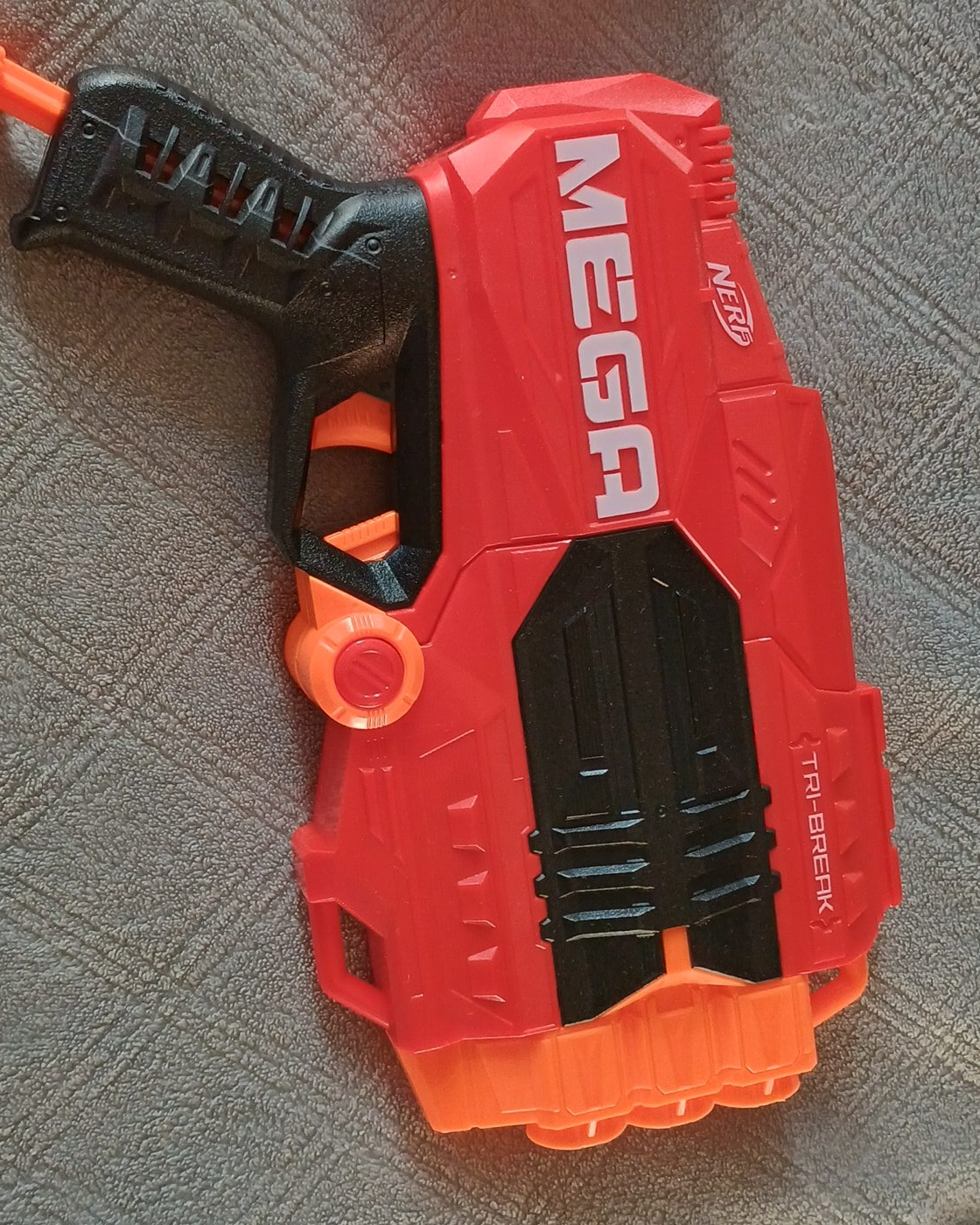 Selling a Nerf Mega Tri-Break blaster! It's in great shape and ready for some action-packed fun. This blaster is perfect for Nerf battles with friends or just practicing your aim. Get ready to unleash some Mega darts! No ammo.