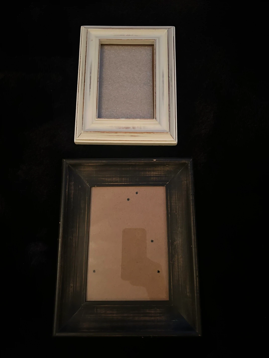 768Pair of two picture frames, one white and one dark brown. Ready for your photos!