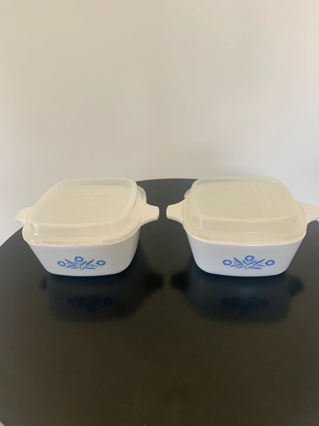 70Selling two Pyrex casserole dishes with lids. They feature a lovely blue floral design. Perfect for baking and serving!