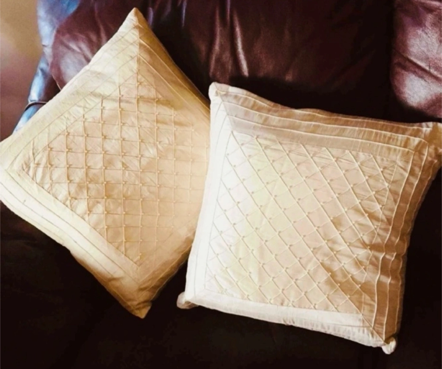 Selling a set of two 16” decorative throw pillows. They're a lovely cream colour with a quilted pattern. They would look great anywhere in your home