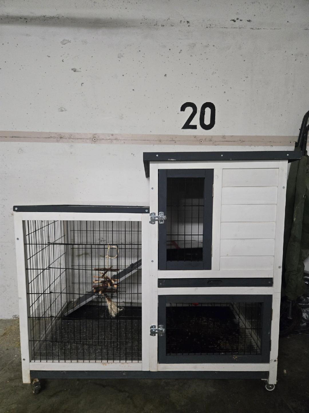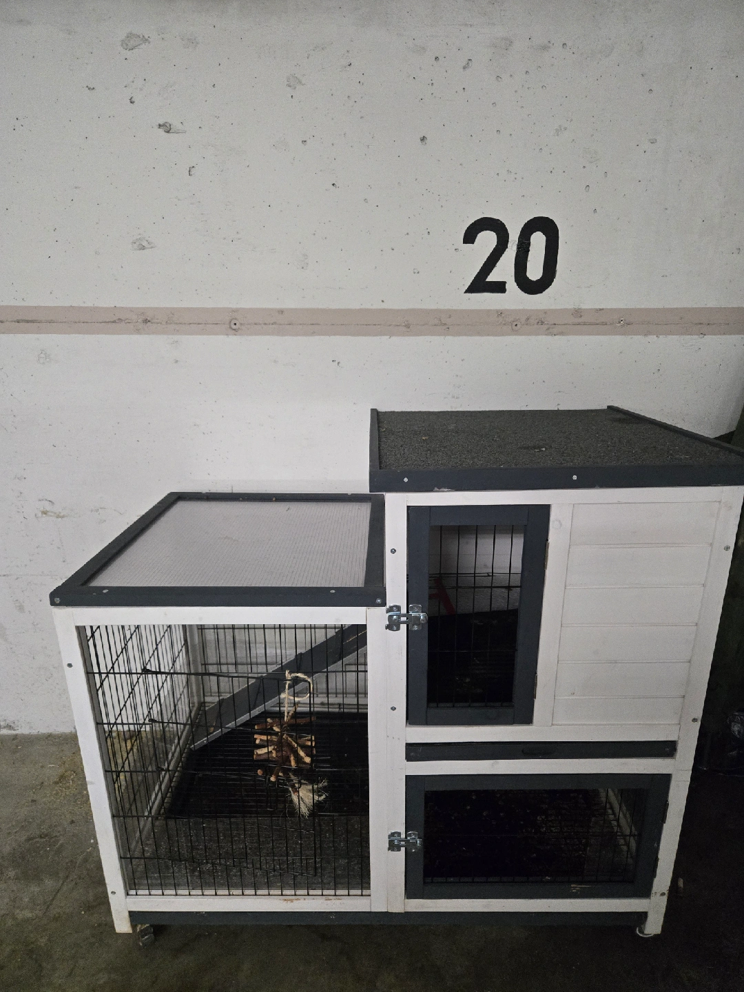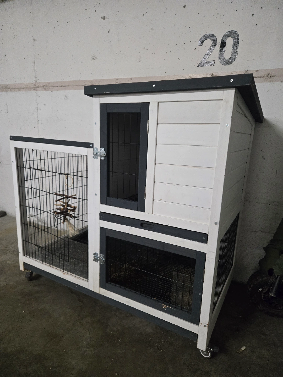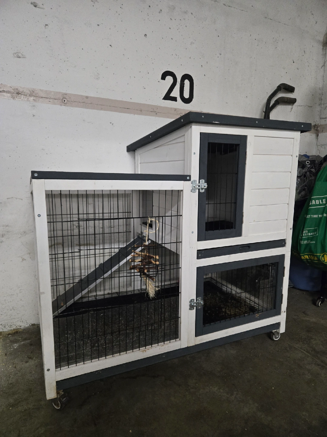 Two Tier Rabbit Cage On Caster Wheels (Delivery Available) 39 1/2 inch width 23 1/2 inch depth 30 inch height 1st level 38 inch height 2nd level Delivery Available Pick up in downtown Vancouver or delivery may be arranged for a reasonable fee. Tags: modern Contemporary chic designer walnut rosewood mahogany cherry nightstands bedside tables side tables end tables living room bedroom wardrobe dresser cb2 eq3 west elm pottery barn crate and barrel structube article Moe's Scandesign rove concept westendtrends furniture vanvaluevintage