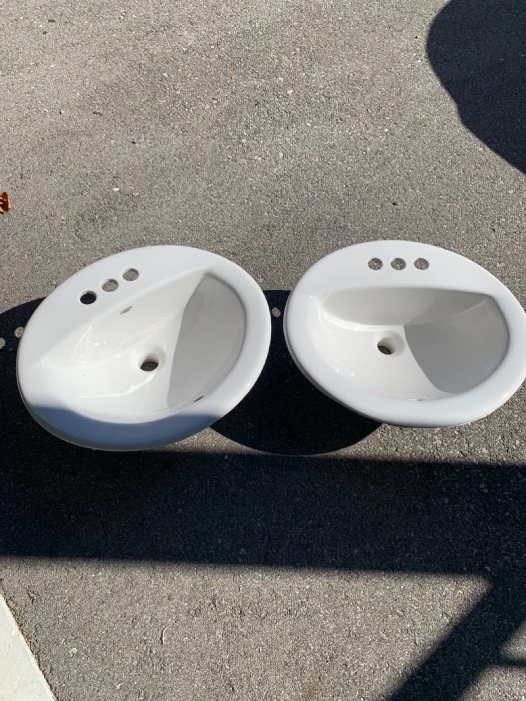 Selling two white bathroom sinks. They are in good condition and ready to be installed in your bathroom or renovation project. $20.00 each