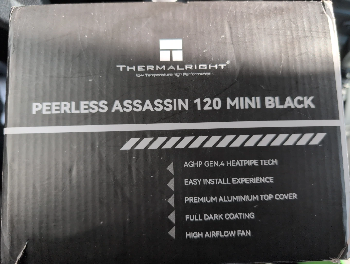 This is a Thermalright Peerless Assassin 120 Mini CPU cooler in black. It features AGHP Gen.4 heatpipe tech and a full dark coating. The dimensions are 13.49cm x 12.5cm x 11cm. This cooler is suitable for keeping PC components running at optimal temperatures.