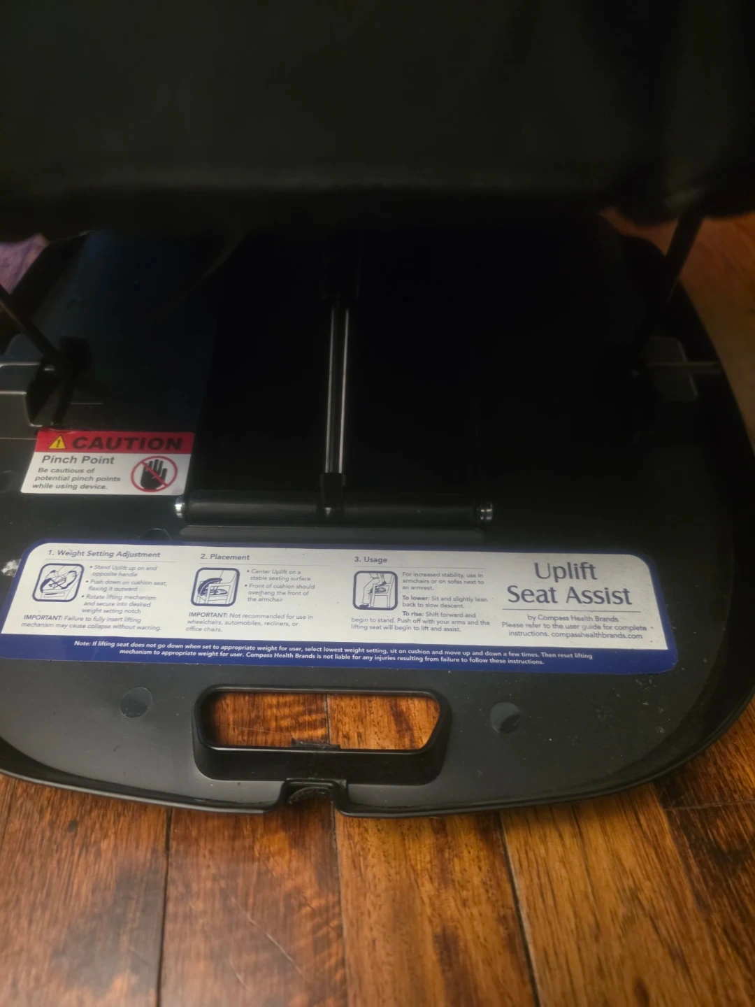 Selling a Compass Health Brands Uplift Seat Assist. It helps to stand up easier from a chair. Please read instructions on the label for proper usage and weight settings.
